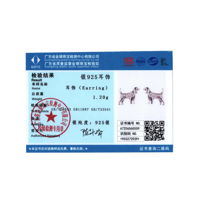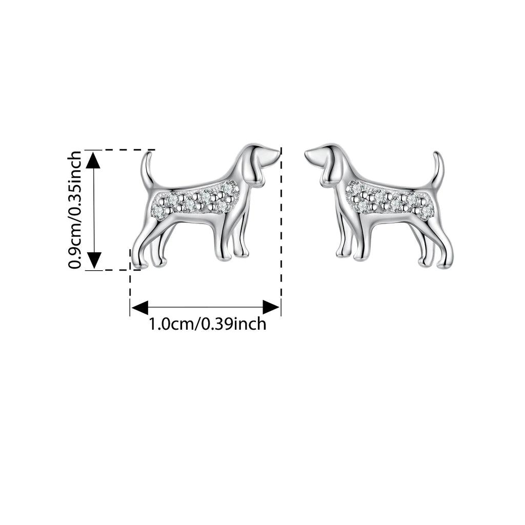 BISAER 925 Sterling Silver Golden Retriever Stud Earrings Pet Dog Earrings Pavé Setting Zircon Plated White Gold Women Jewelry
