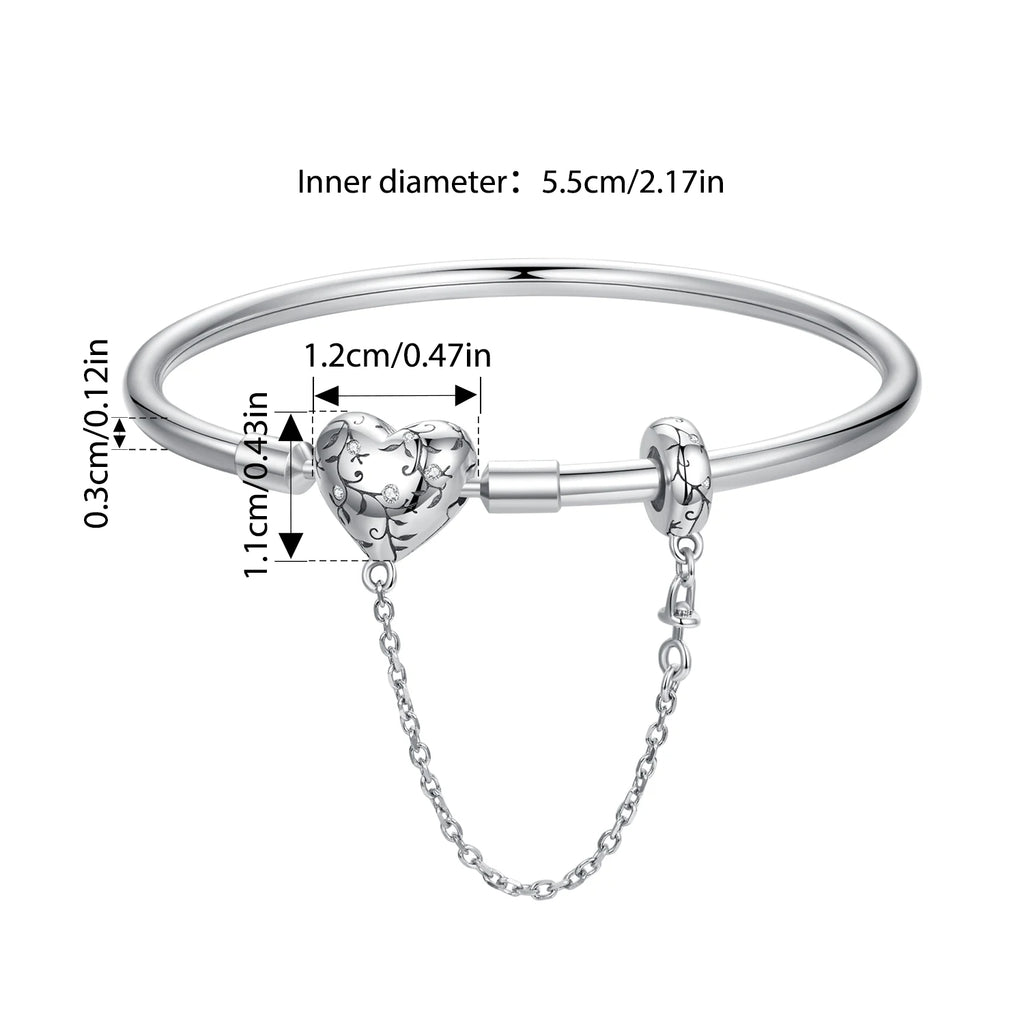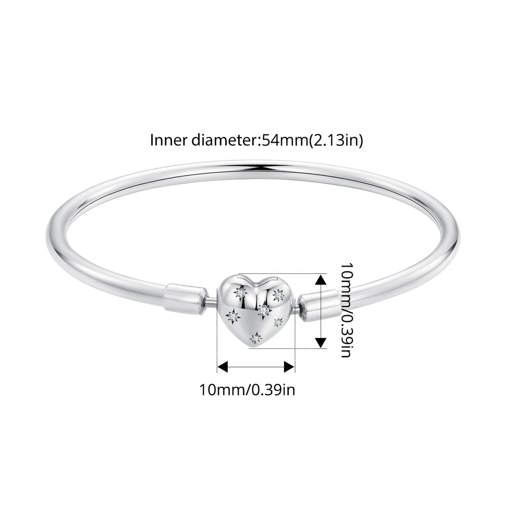BISAER 925 Sterling Silver Heart Bracelet Dainty Starry Basic Bracelet Plated White Gold for Women DIY Charm Bead Fine Jewelry
