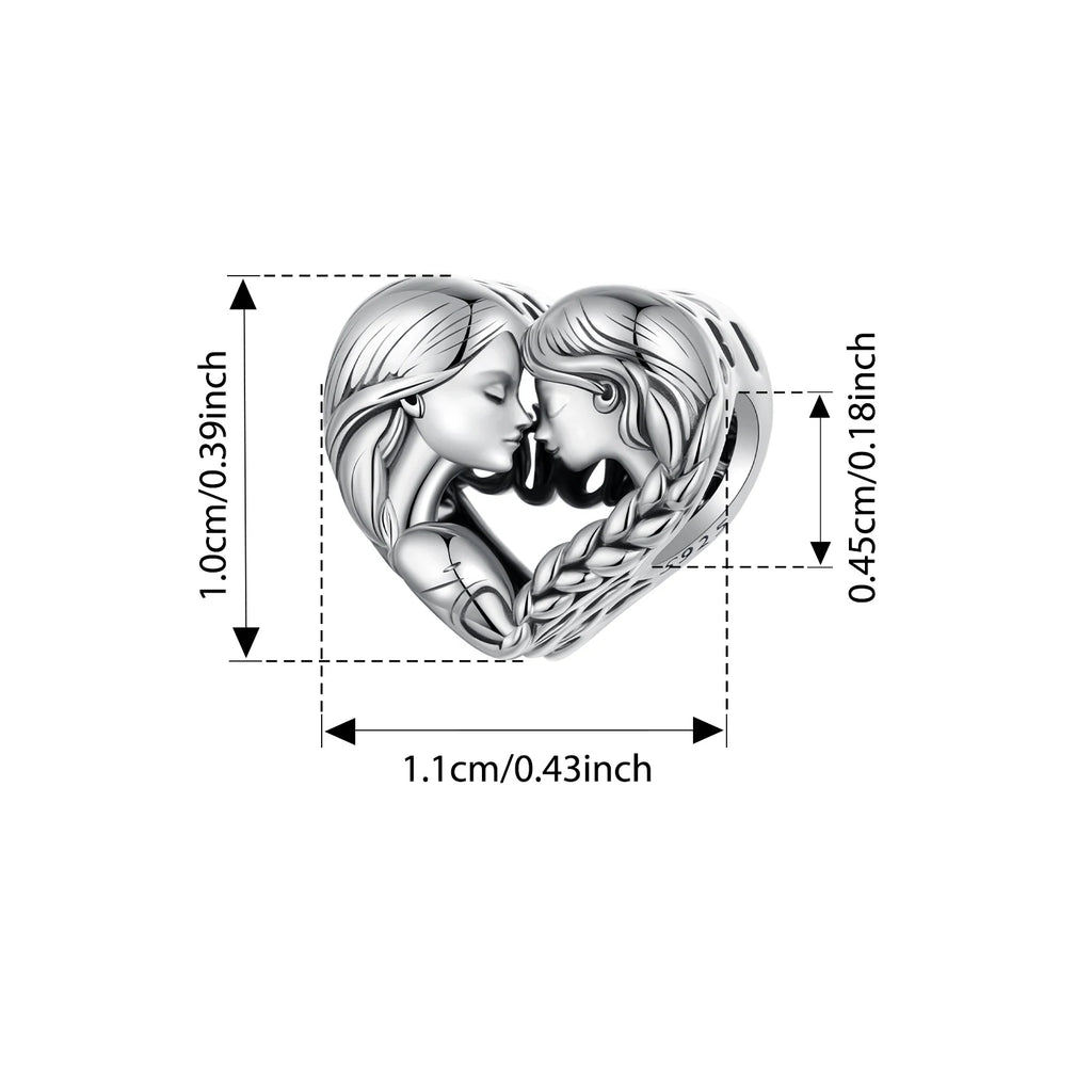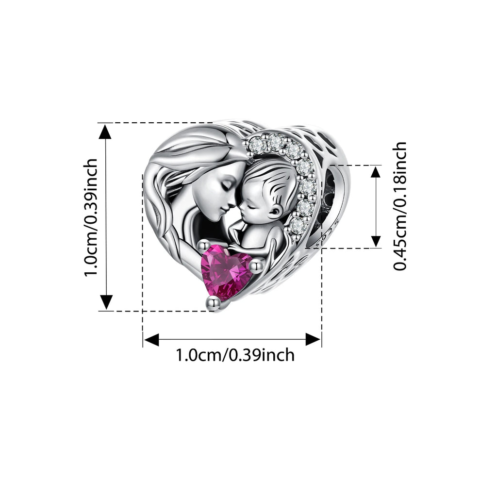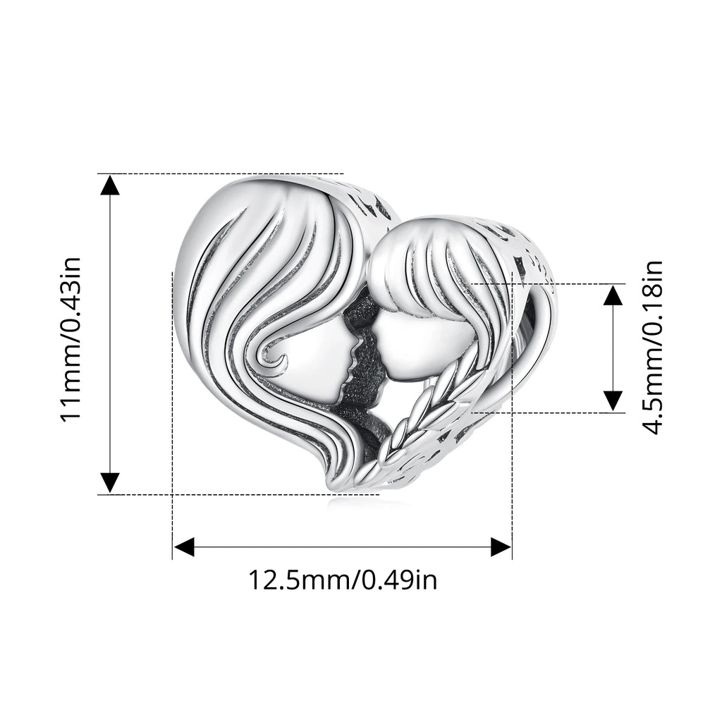 BISAER 925 Sterling Silver Heart Family Charm Angel Mother Child Hug Love Bead For Women Mother's Day DIY Bracelet Fine Jewelry