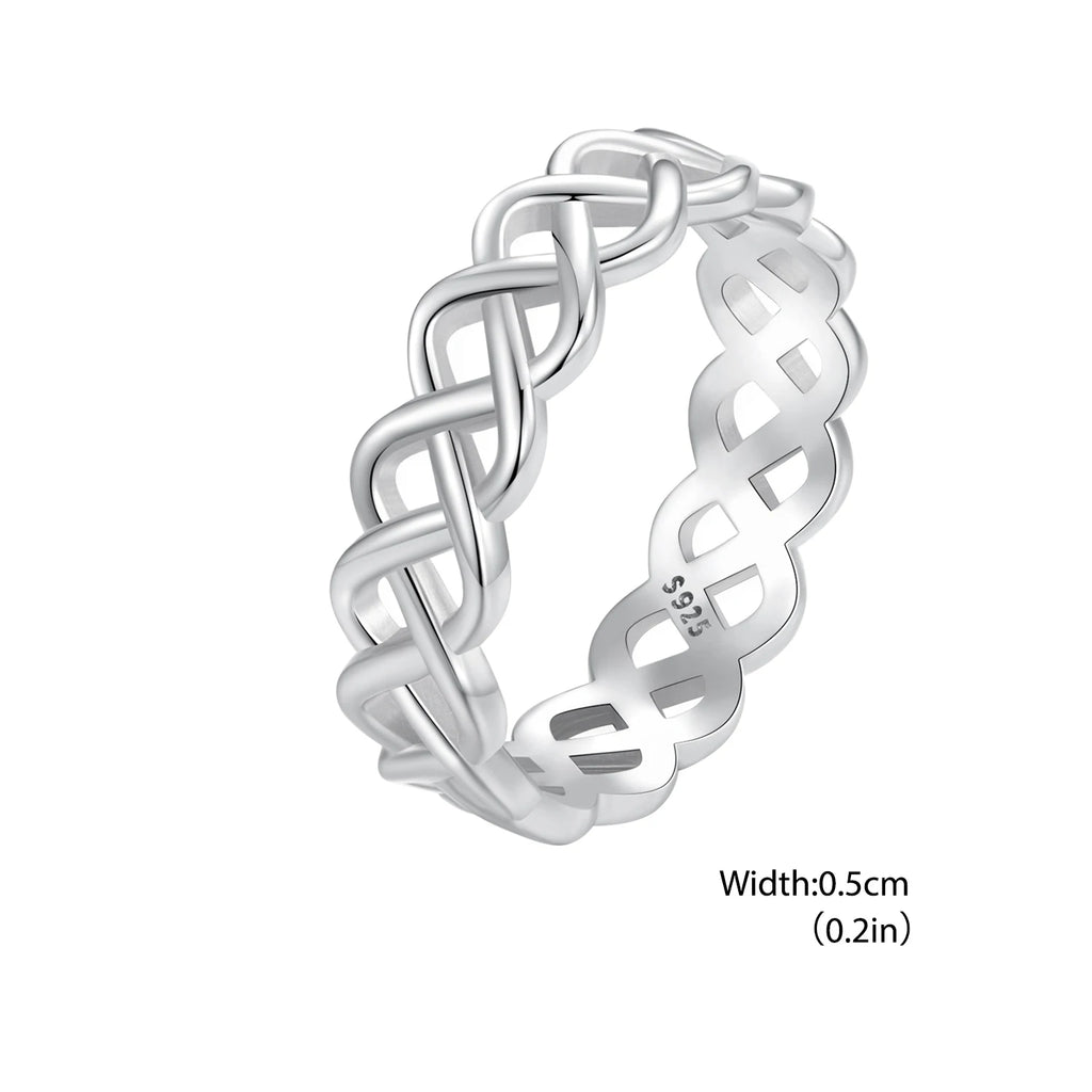 BISAER Bague tissée creuse en argent sterling 925 minimaliste plaqué or blanc pour femme, bijoux fins, cadeau de fête