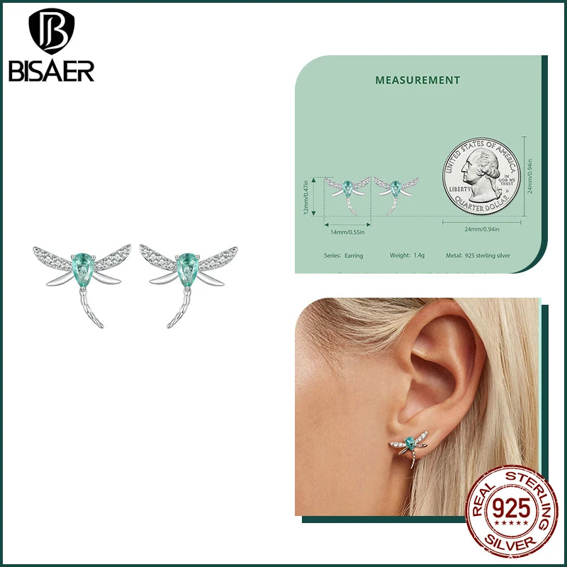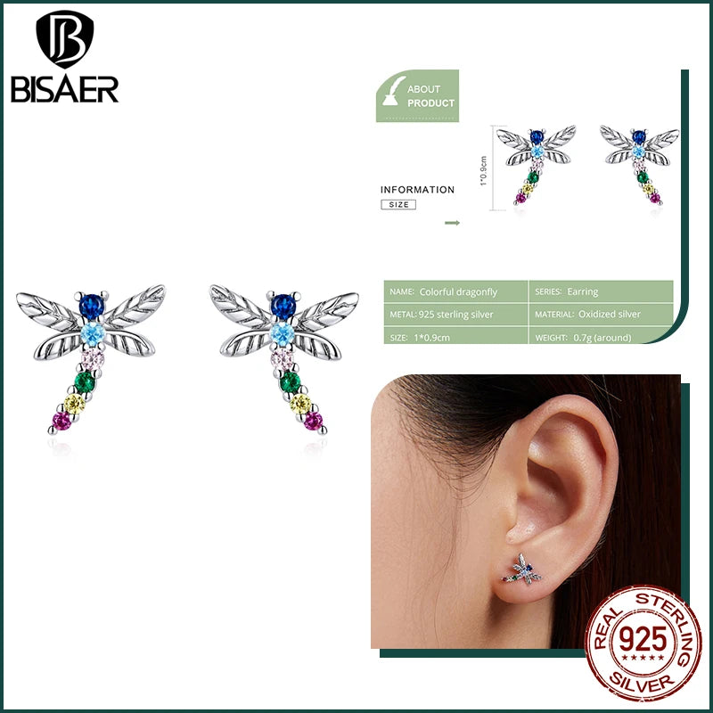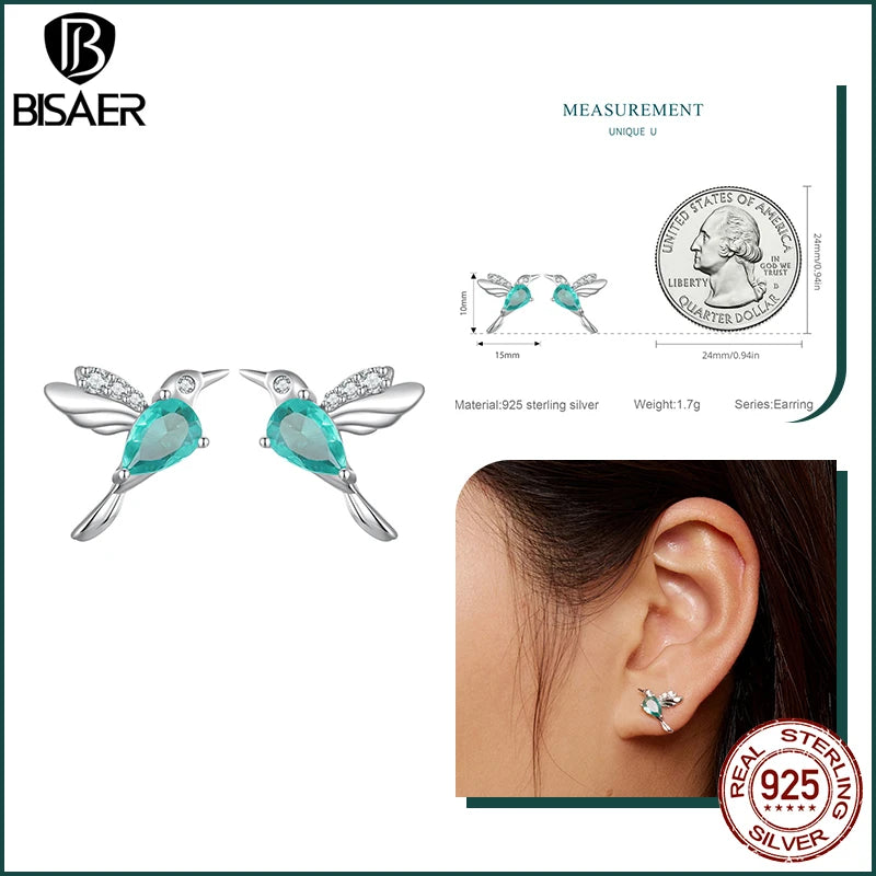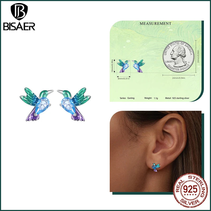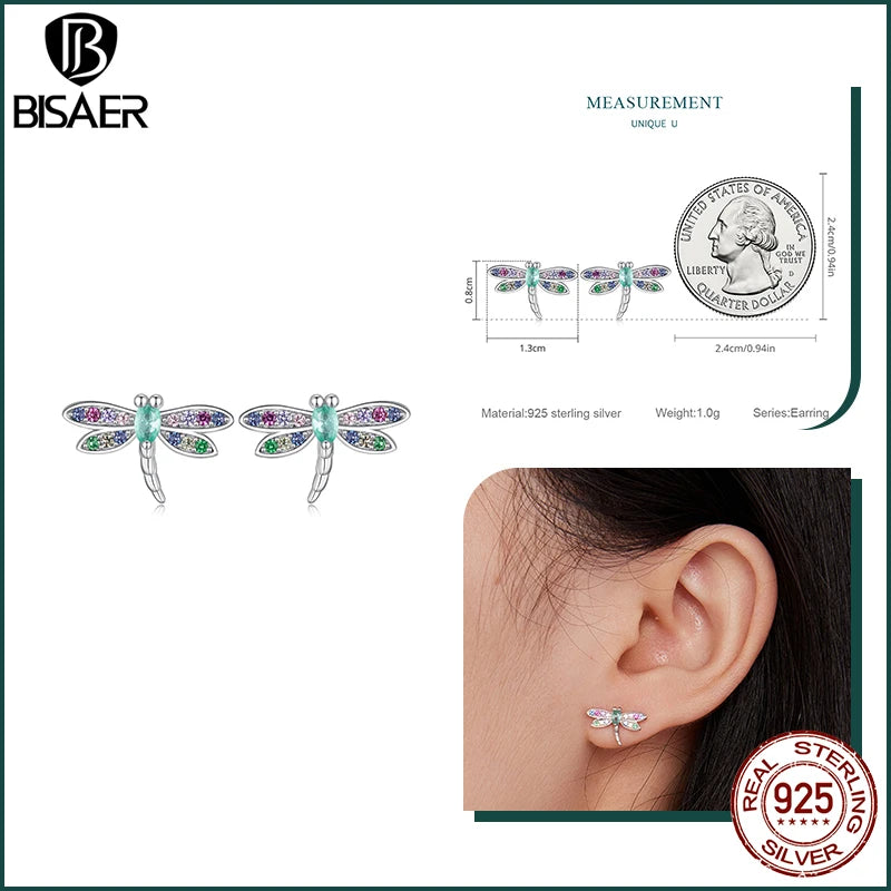 Boucles d'oreilles à tige en argent sterling 925 BISAER en forme de colibri, boucles d'oreilles papillon libellule pour femmes, mini clip d'oreille pour fête, cadeau pour fille