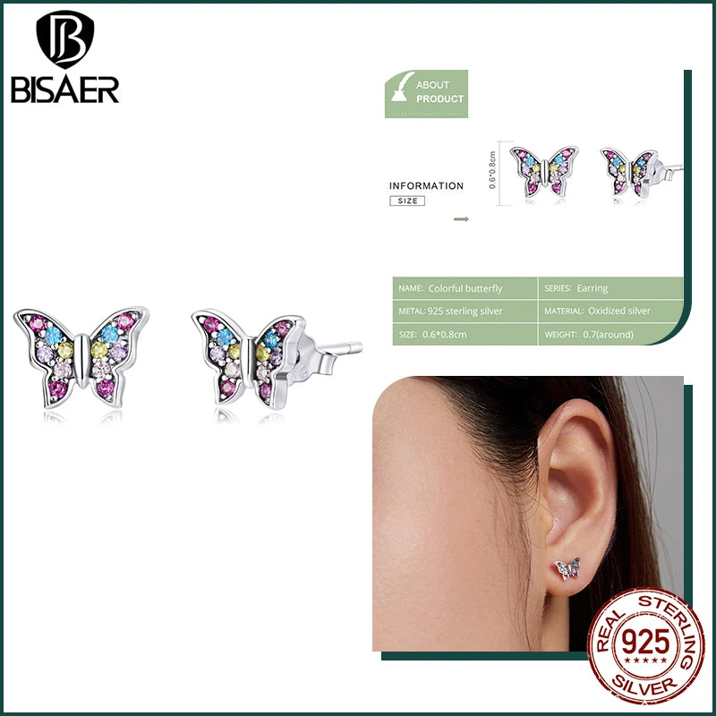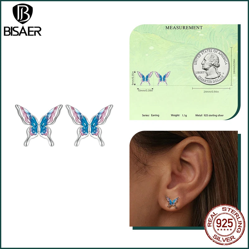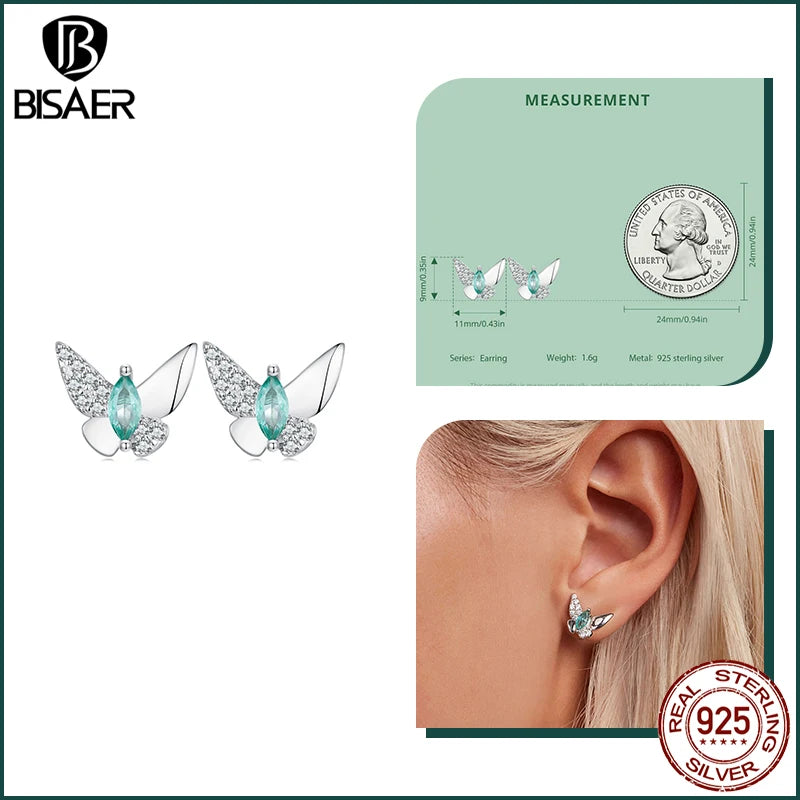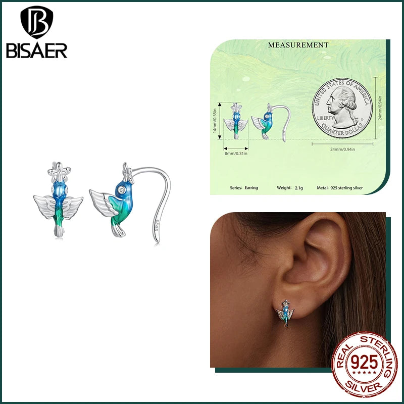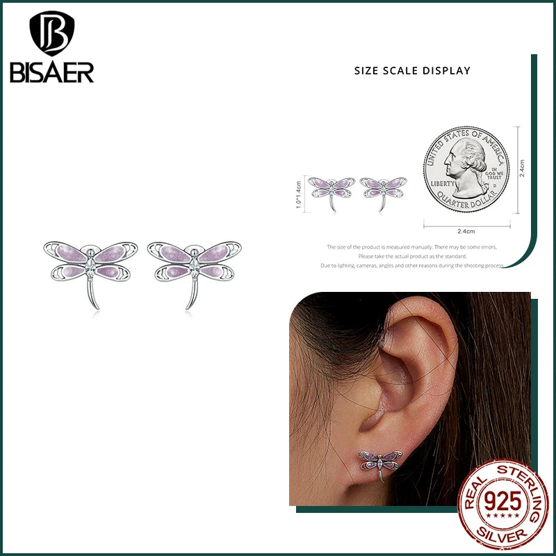 Boucles d'oreilles à tige en argent sterling 925 BISAER en forme de colibri, boucles d'oreilles papillon libellule pour femmes, mini clip d'oreille pour fête, cadeau pour fille