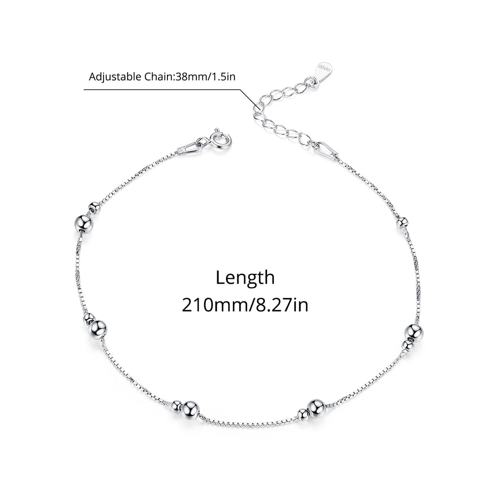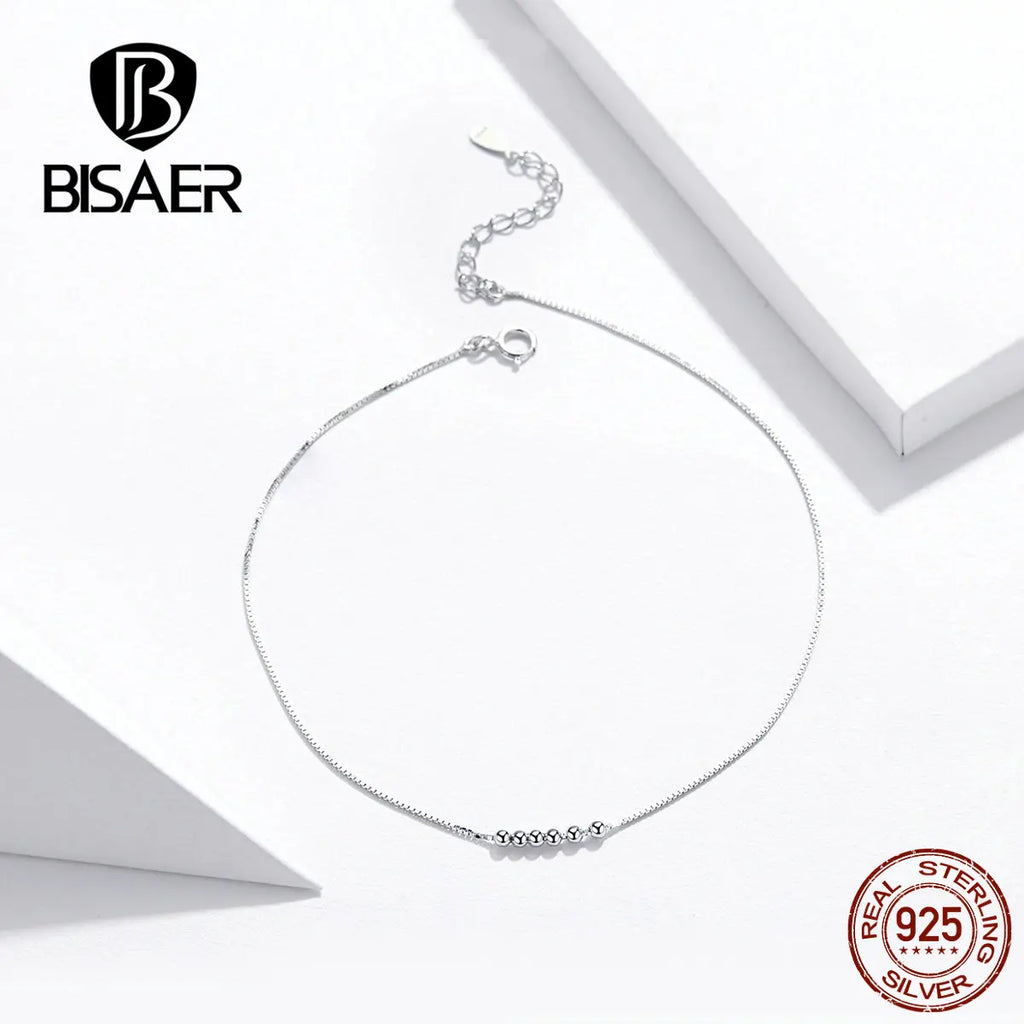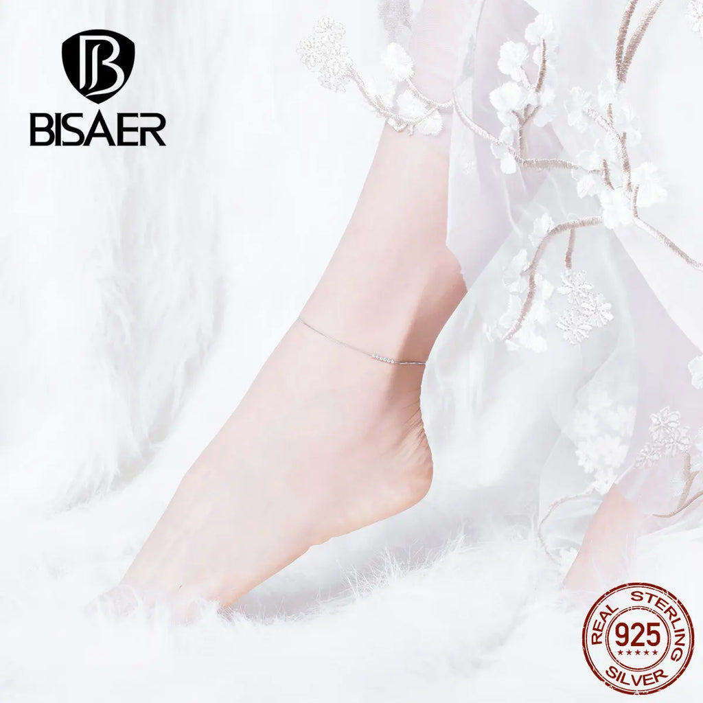 BISAER 925 Sterling Silver Lobster Fermoir Cheville Femmes Cheville Simple Longue Chaîne Hypoallergénique pour Femmes Bijoux Fins ECT007