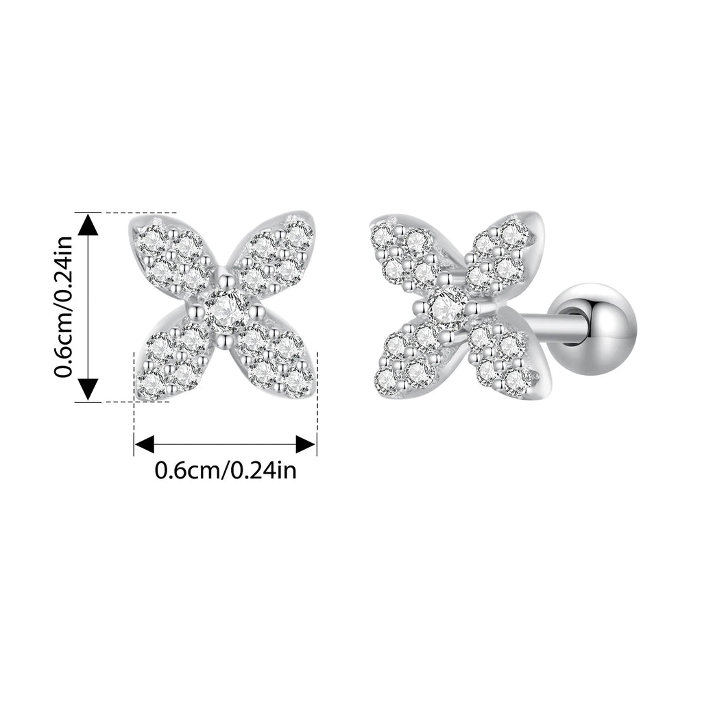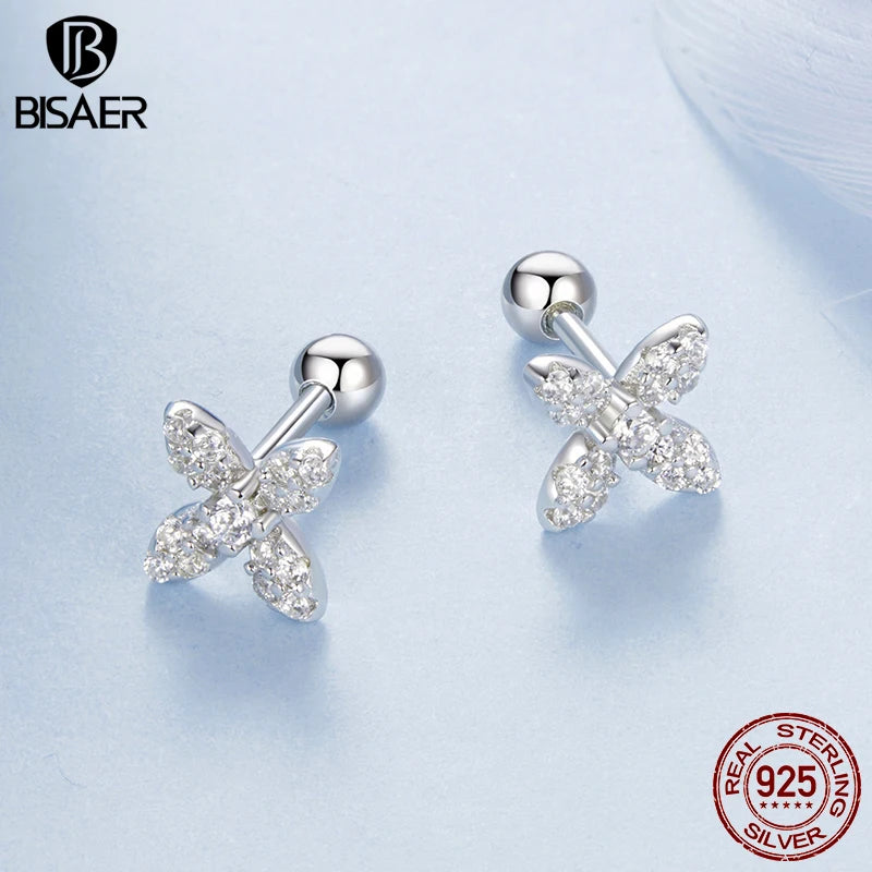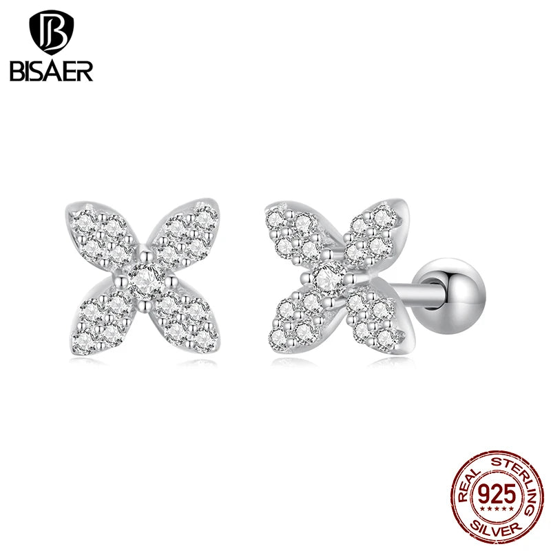 Boucles d'oreilles à tige en argent sterling 925 BISAER - Mini fleur - Zircon scintillant - Hypoallergéniques - Pour femme - Cadeau de fête