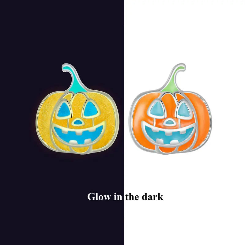 BISAER Boucles d'oreilles à tige lumineuses en argent sterling 925 en forme de mini citrouille en émail pour fille, bijoux fins originaux pour fête d'Halloween