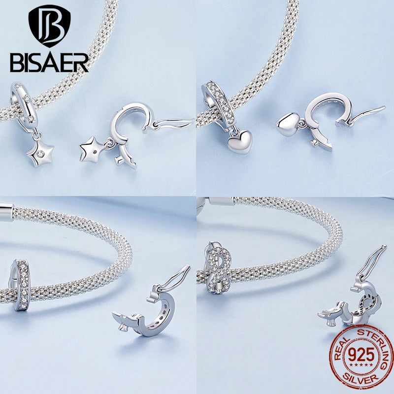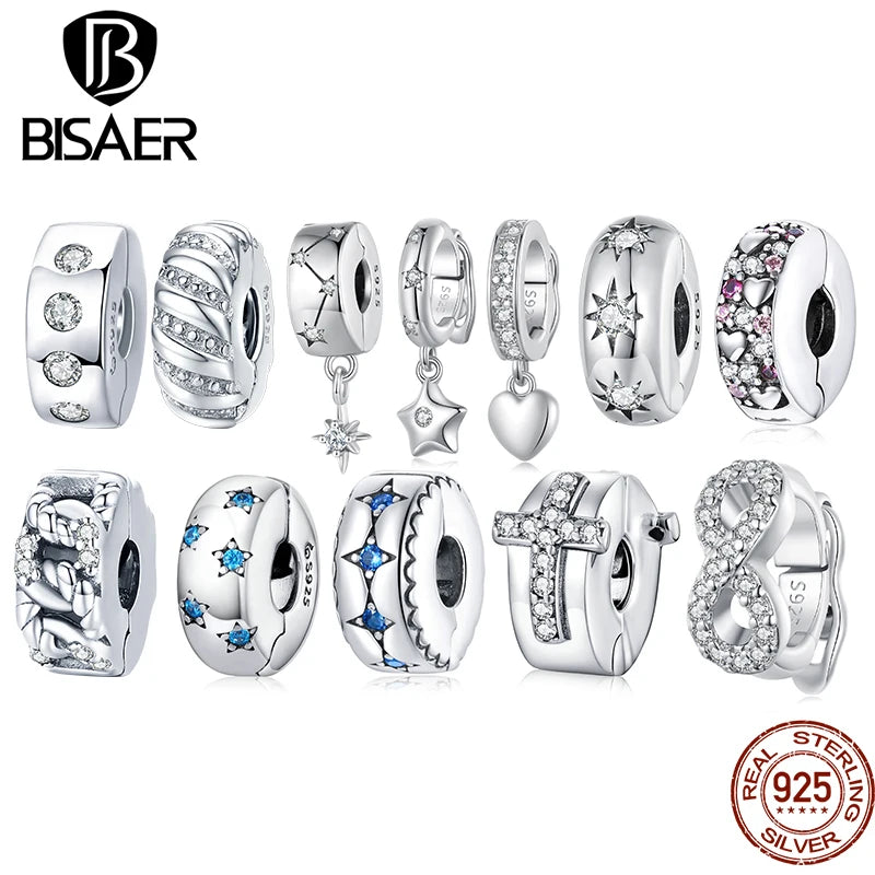 BISAER 925 Sterling Silver Openable Clip Spacer Charm Fit Women DIY Bracelet Lock Stopper Perle Plaqué Platine Fine Jewelry Gift