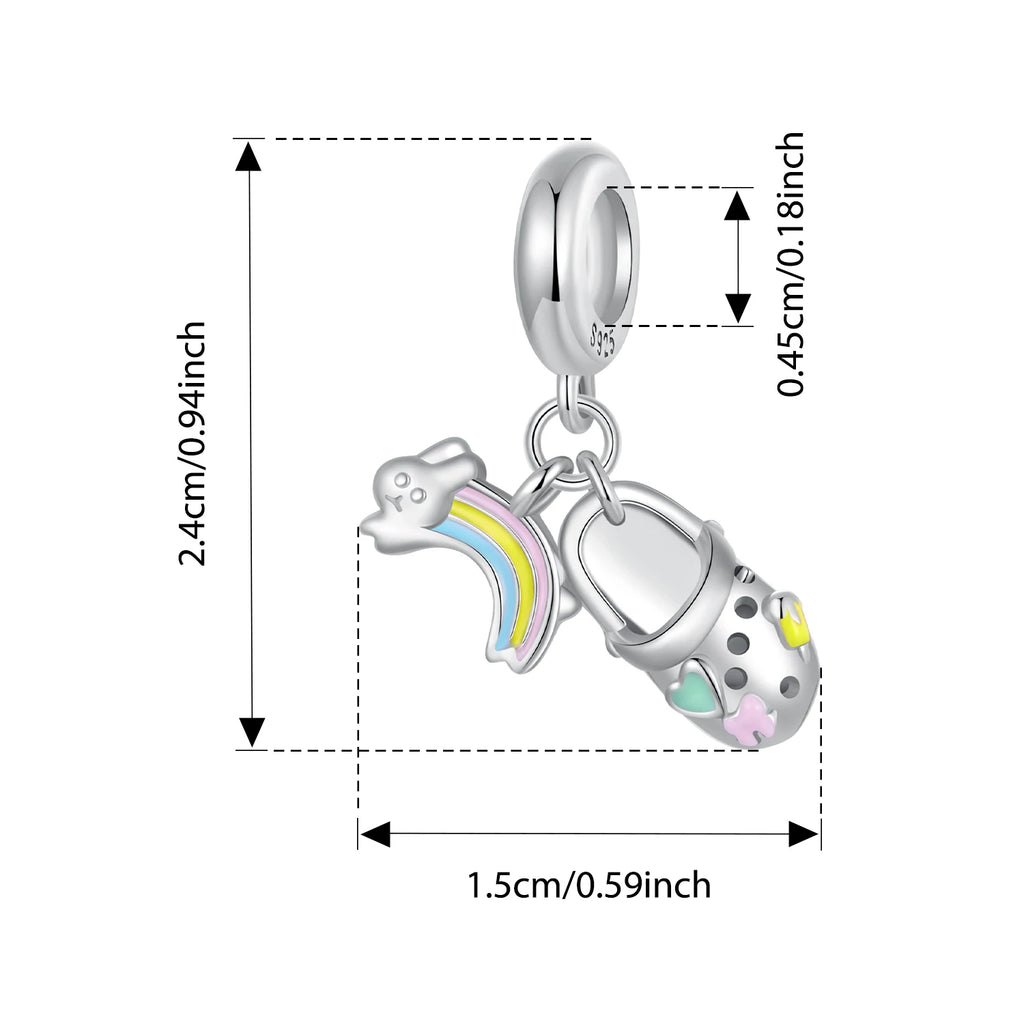 BISAER 925 Sterling Silver Pink FireworkAs Castle Pendant Game Consoles Suitable Charm Bead Fit Women DIY Bracelet Fine Jewelry