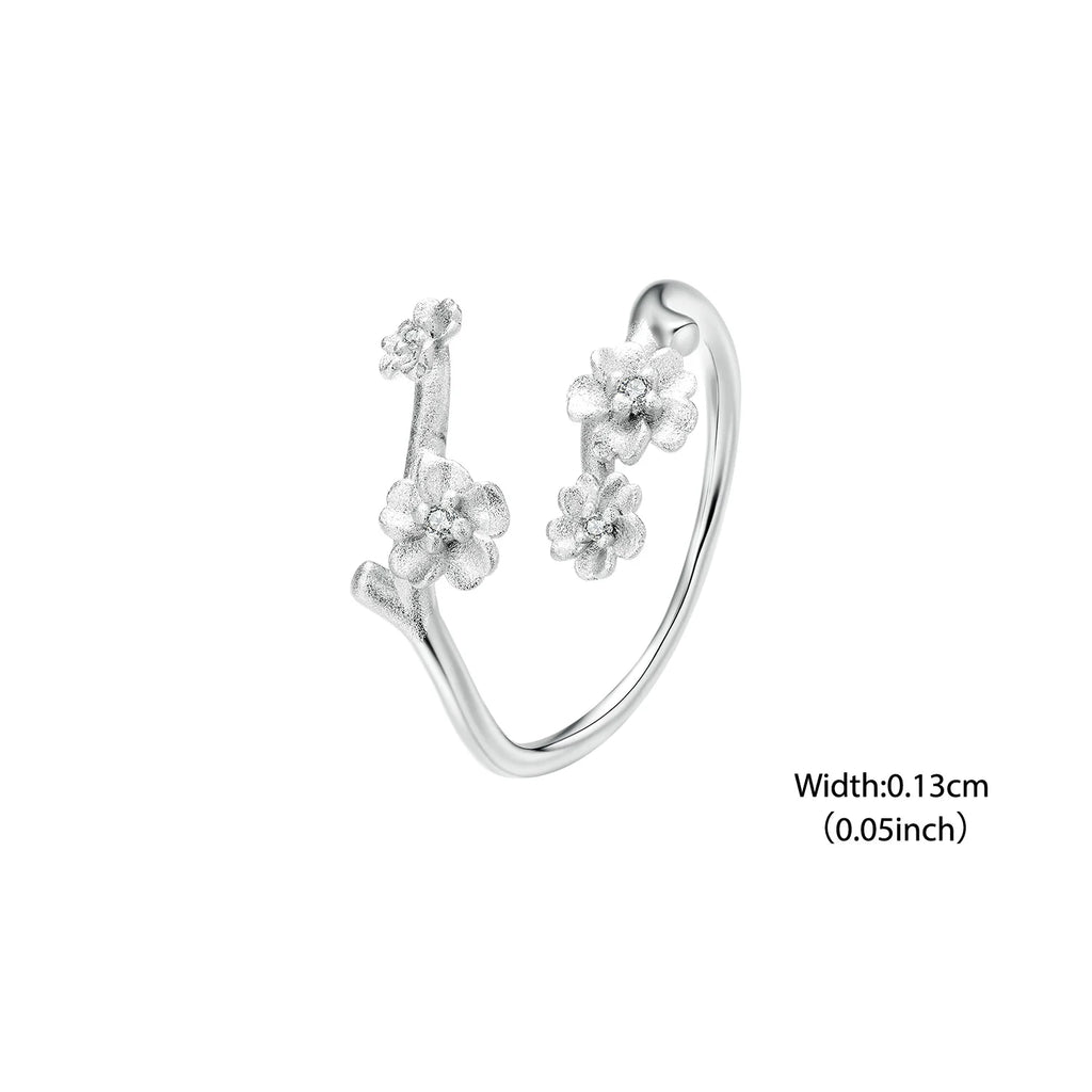BISAER 925 Sterling Silver Plum Blossom Open Ring Flower Adjustable Band Plated White Gold for Women Party Original Fine Jewelry