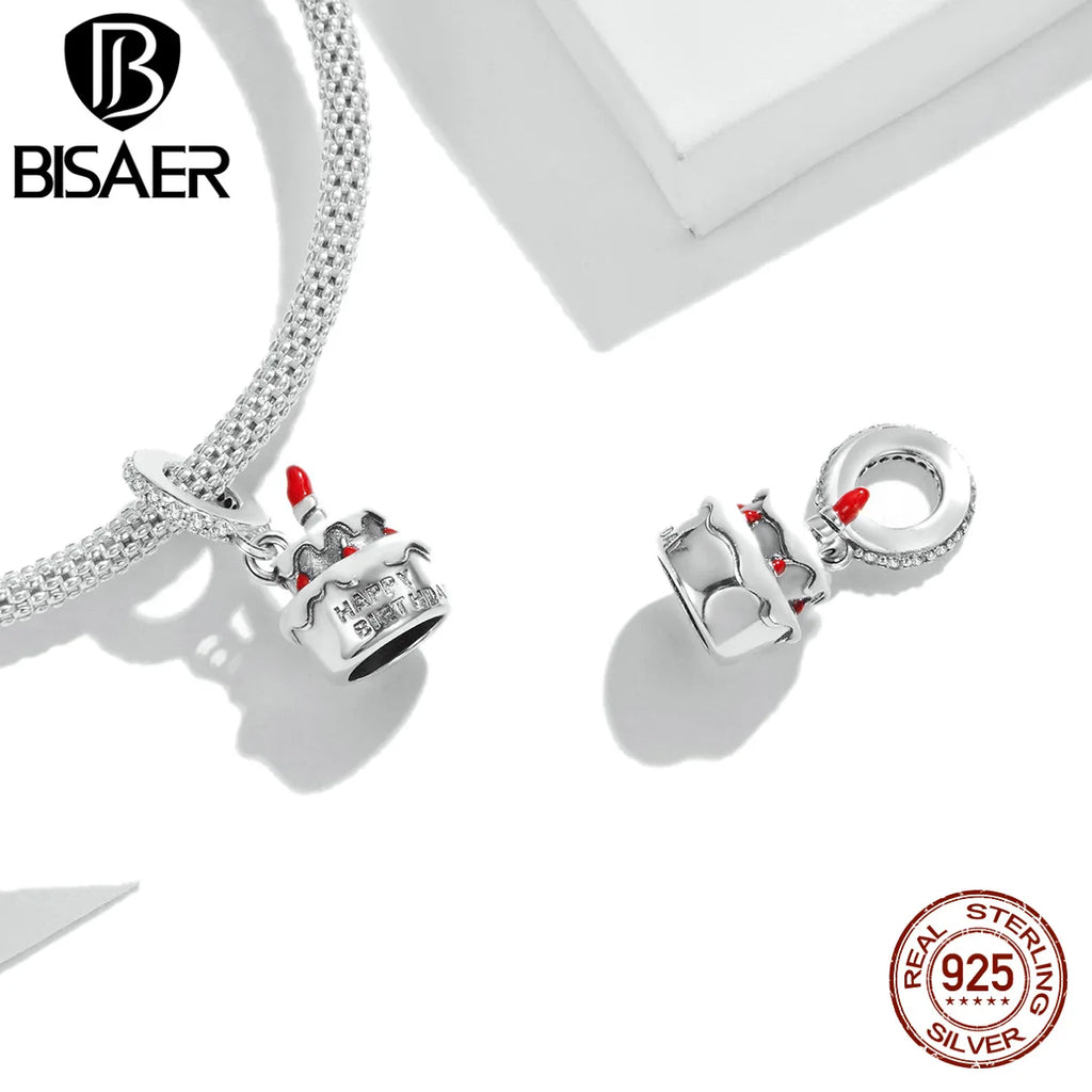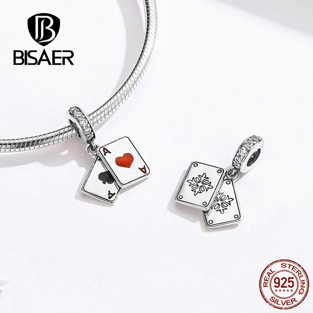 BISAER 925 Sterling Silver Red Love Charm Bead Koi Apple Cherry Mushroom Chili Ace Heart Pendant For Women DIY Bracelet Jewelry