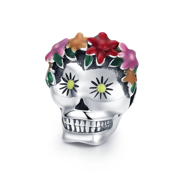 BISAER Pendentif tête de mort en argent sterling 925 avec breloque en forme de fantôme pour bracelets et colliers, fête d'Halloween, bijoux fins à faire soi-même