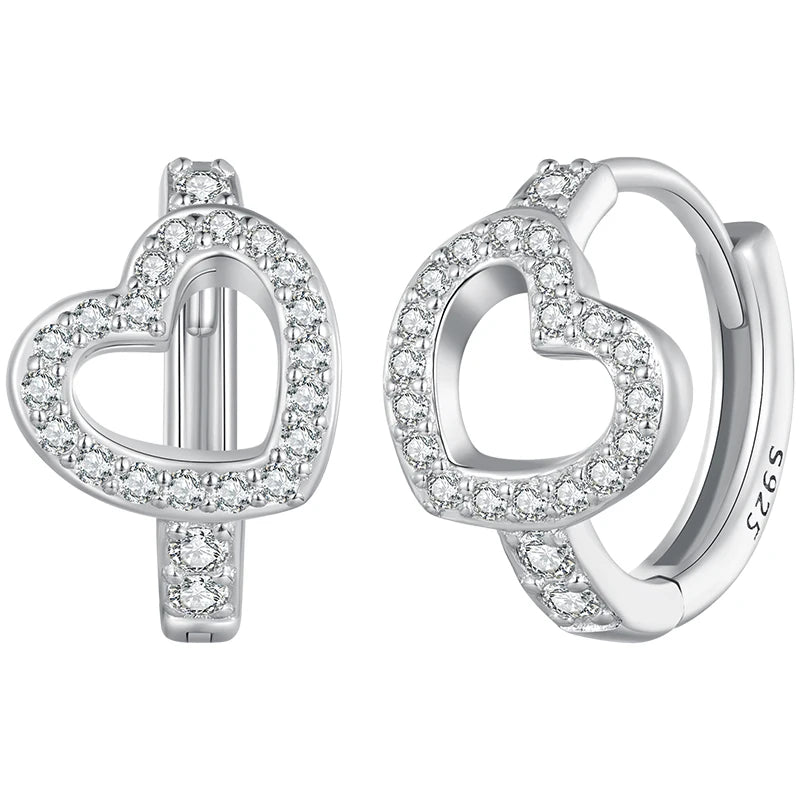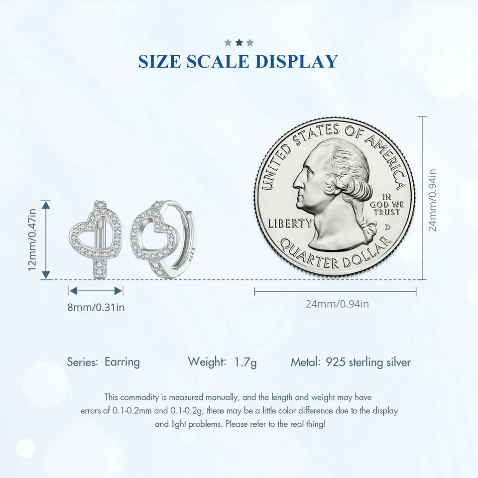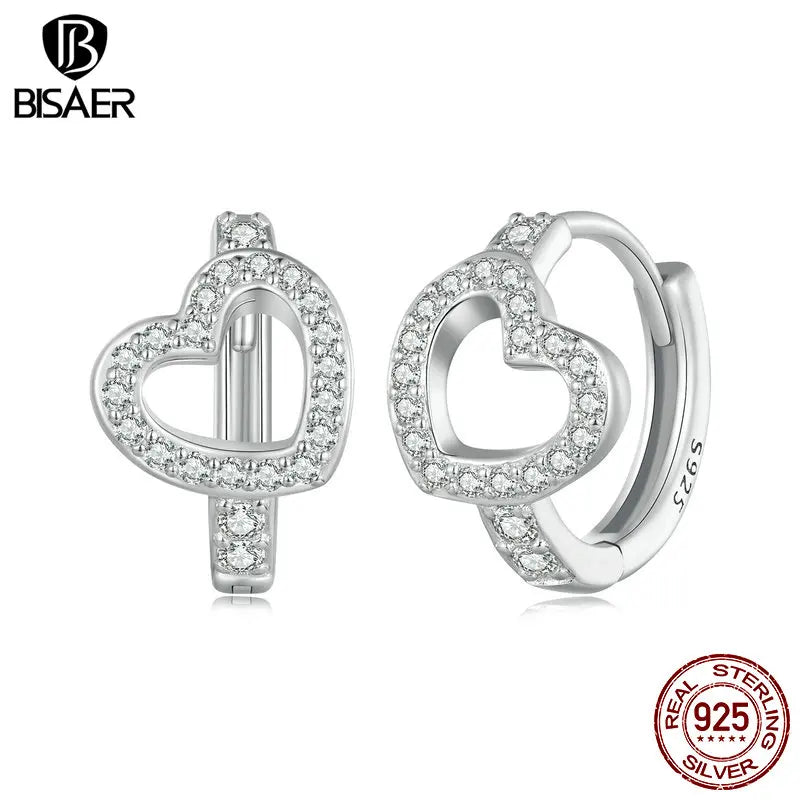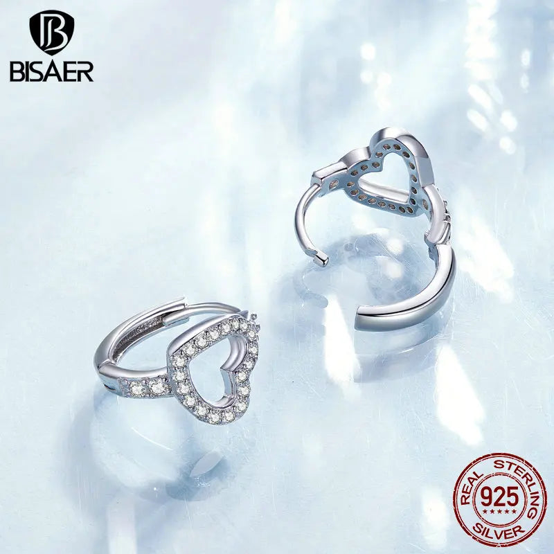 Boucles d'oreilles créoles en argent sterling 925 BISAER en forme de cœur brillant serti pavé de zircons plaqués platine, bijoux fins pour femmes, cadeau de mariage