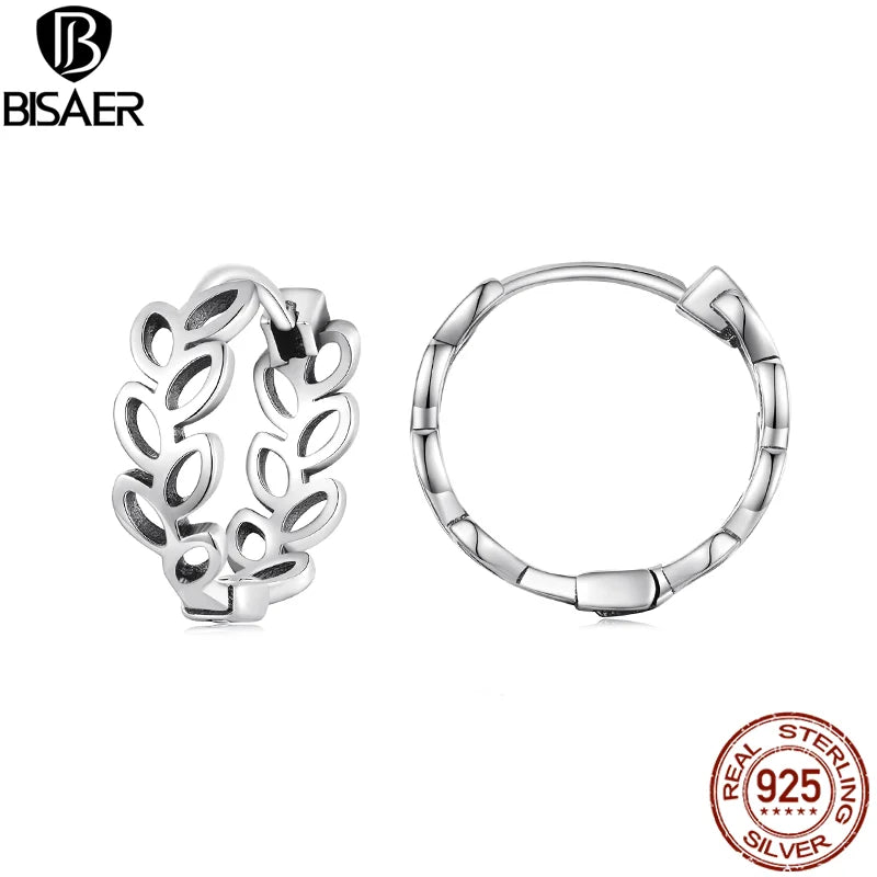 BISAER Boucles d'oreilles créoles simples en argent sterling 925 avec feuilles creuses pour femmes, bijoux fins originaux, cadeau de fête