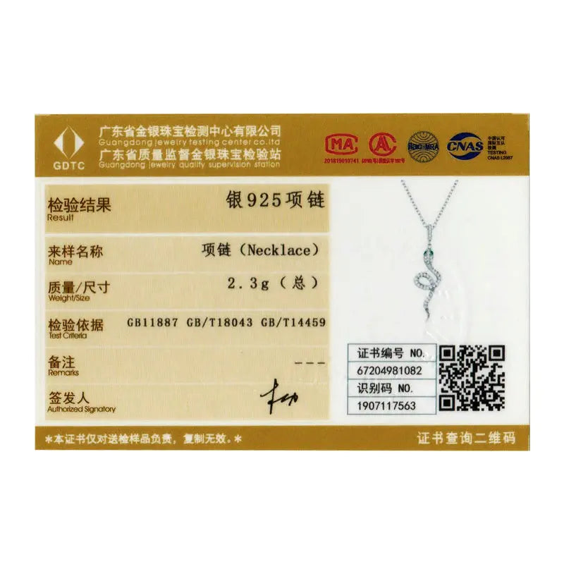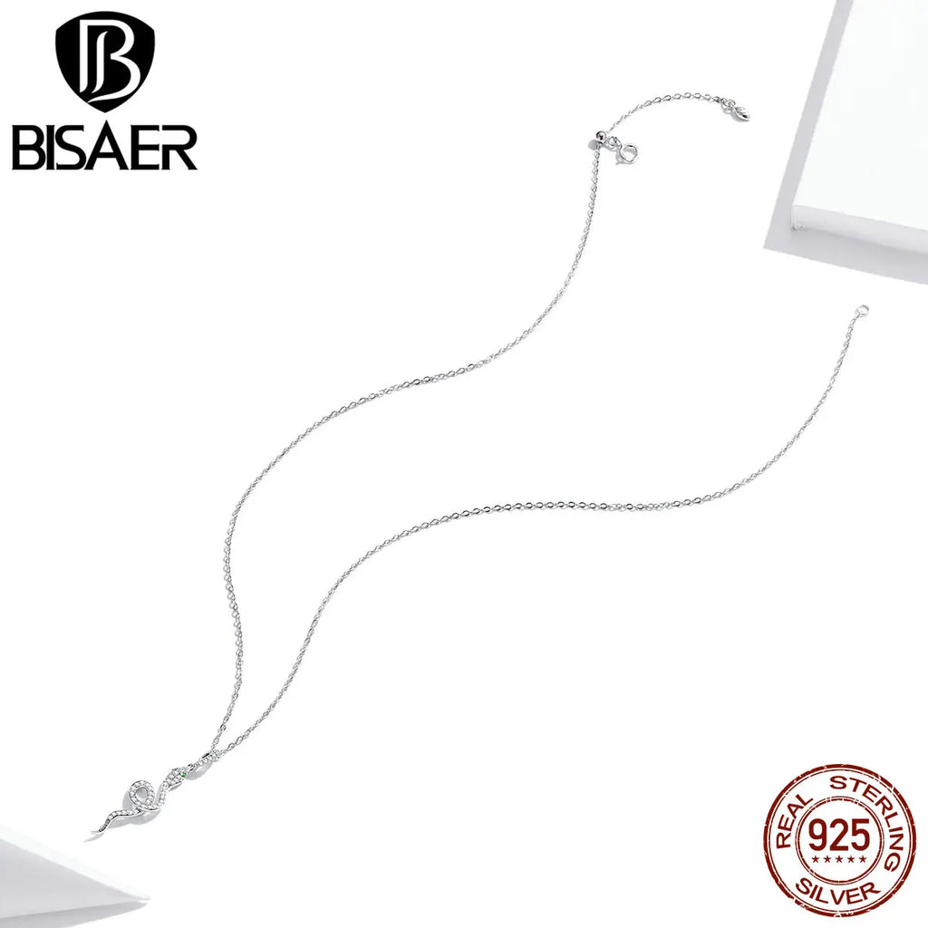 BISAER 925 Sterling Silver Snake Necklace Pendant Pave Setting Zircon Plated Platinum for Women Adjustable Chain Fine Jewelry