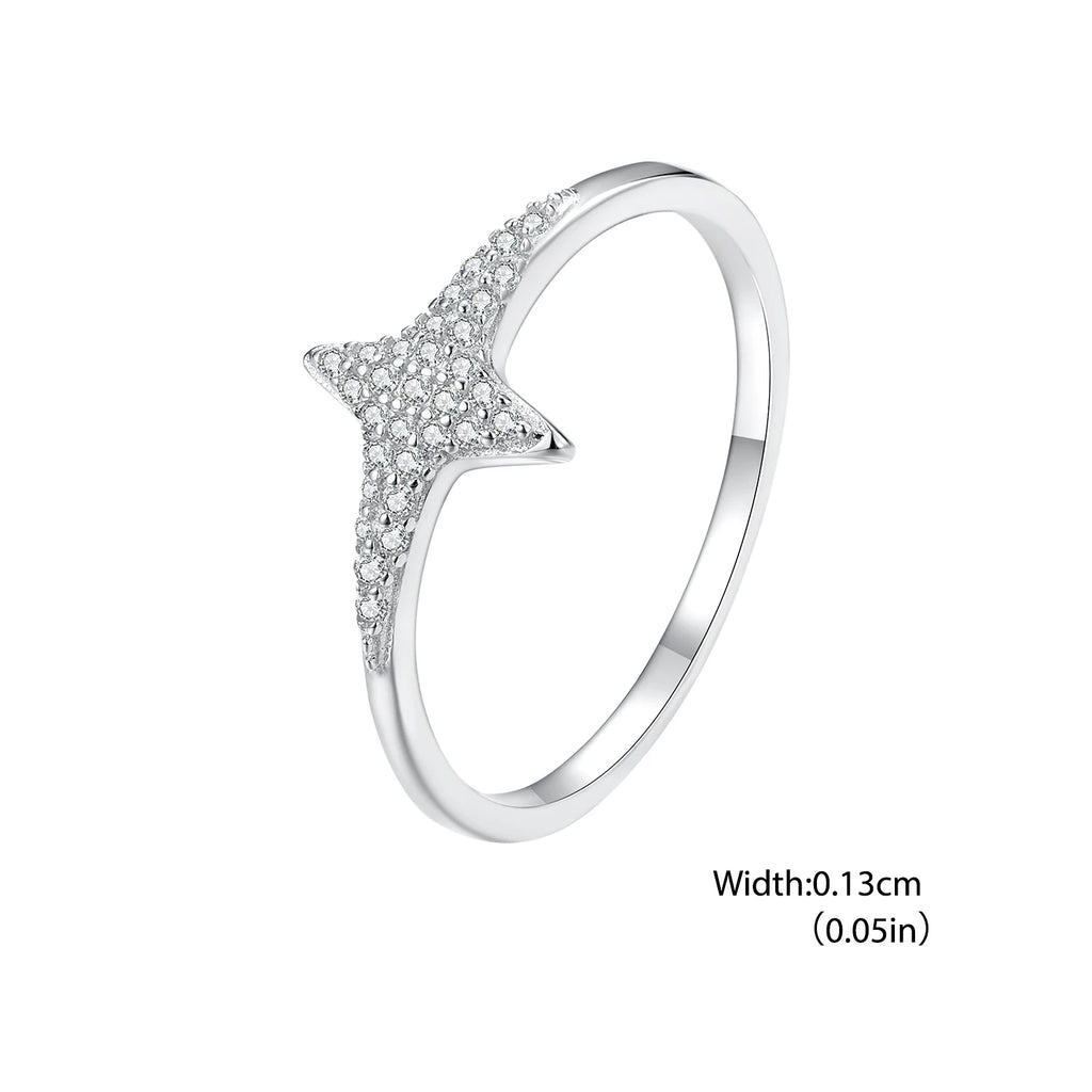 Bague étoile scintillante en argent sterling 925 BISAER sertie de zircons pavés, bande de doigt plaquée or blanc pour femme, bijoux fins de mariage