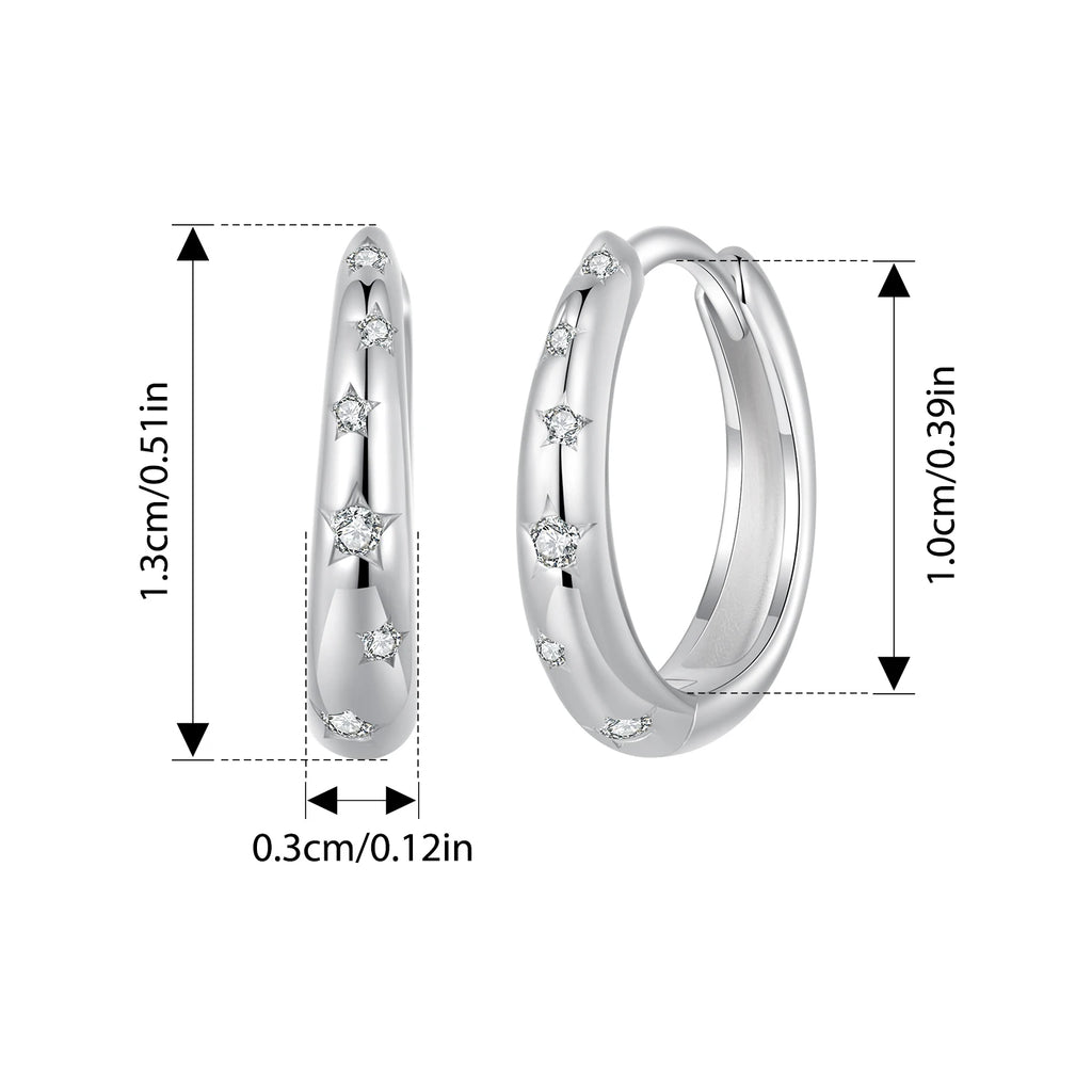Boucles d'oreilles créoles en argent sterling 925 BISAER pour femme avec sertissage pavé et boucles en zircon plaqué or blanc