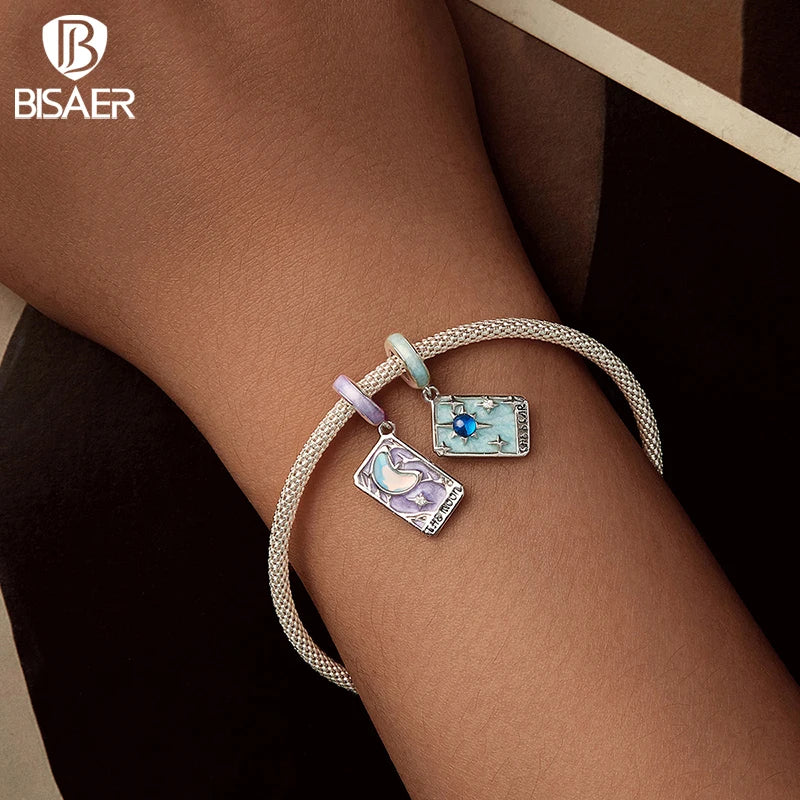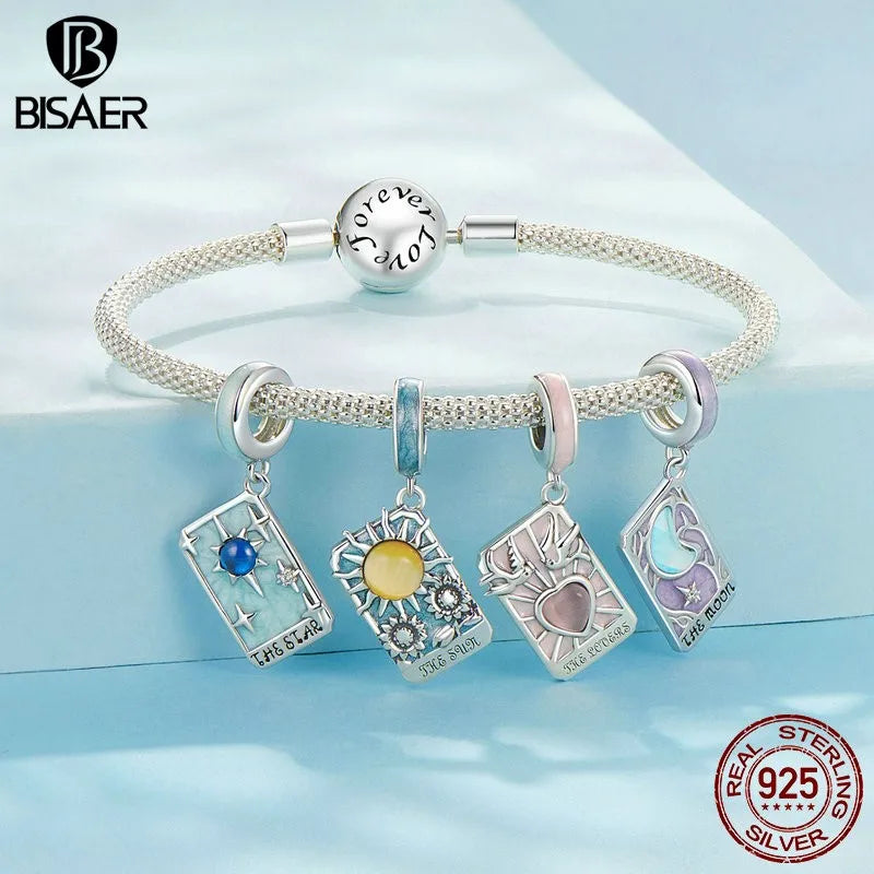 BISAER Pendentif en argent sterling 925 avec breloque en forme d'étoile et de carte de tarot pour femme, bijoux fins, cadeau