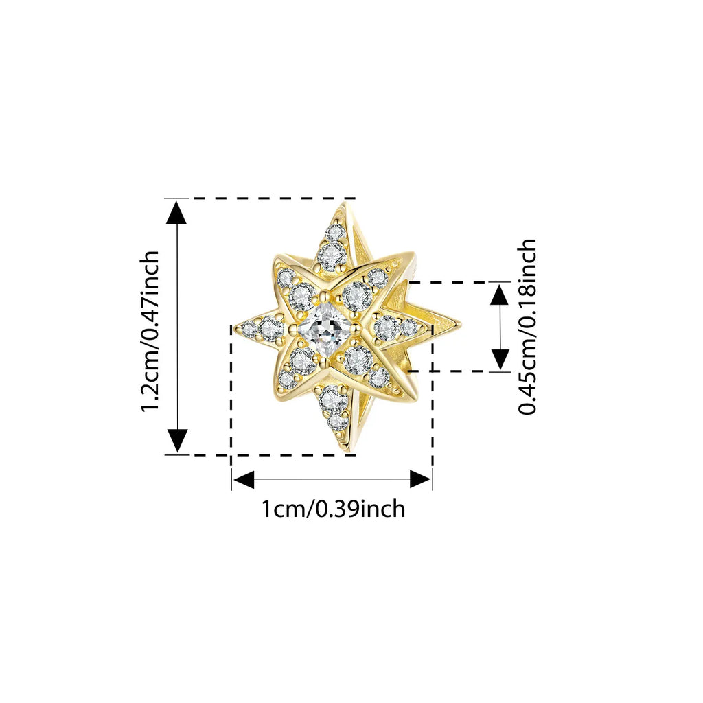 BISAER 925 Sterling Silver Starburst Charm Twinkle Star Bead Plated Gold for Women DIY Bracelet & Necklace Fine Jewelry Gift