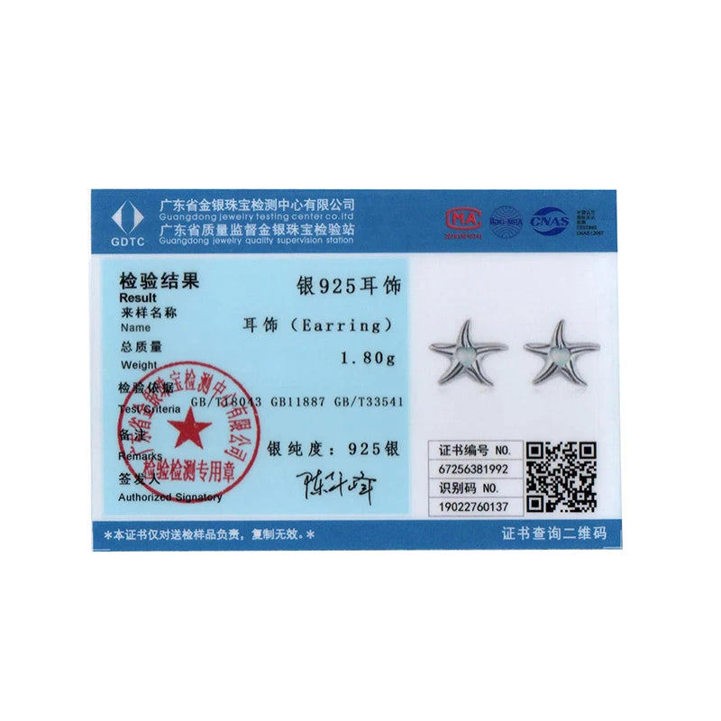 BISAER 925 Sterling Silver Starfish Stud Earrings Heart Glass Marine Animals Stud Ear for Women Party Fine Jewelry Holiday Gift