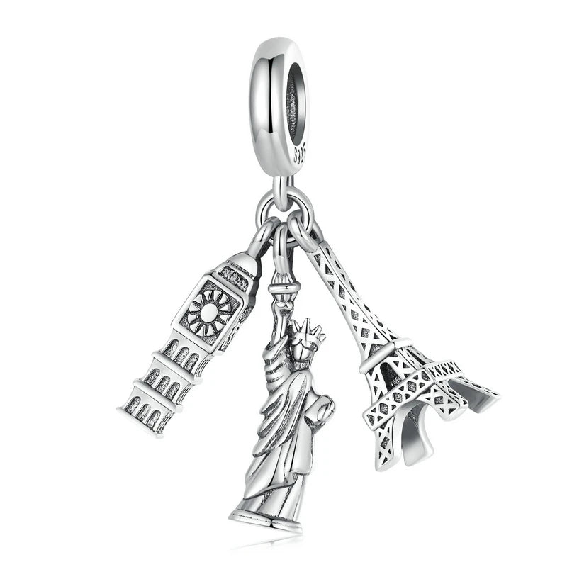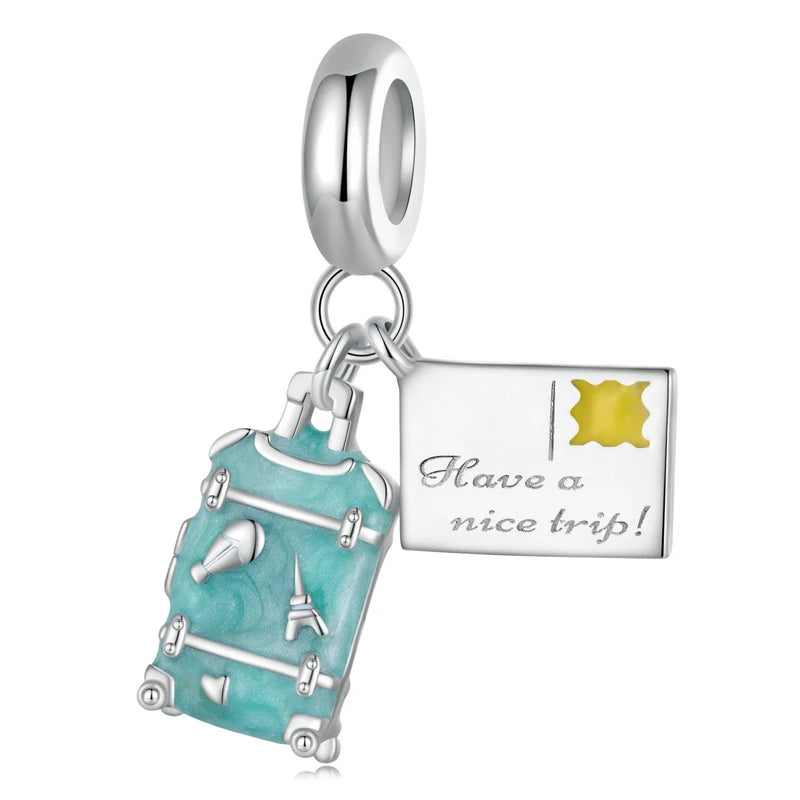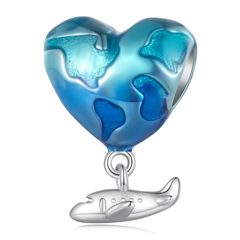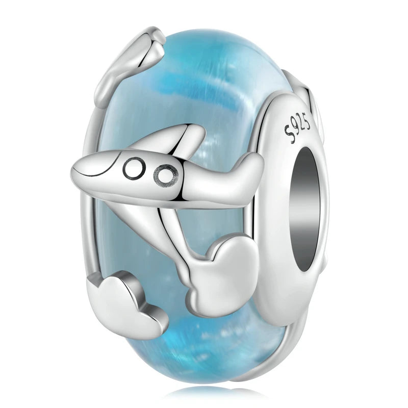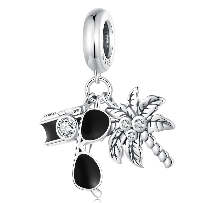 Breloque en argent sterling 925 BISAER pour vacances d'été, perles rouges à lèvres, lunettes de soleil, talons hauts, pendentif avion, convient aux bracelets DIY pour femmes