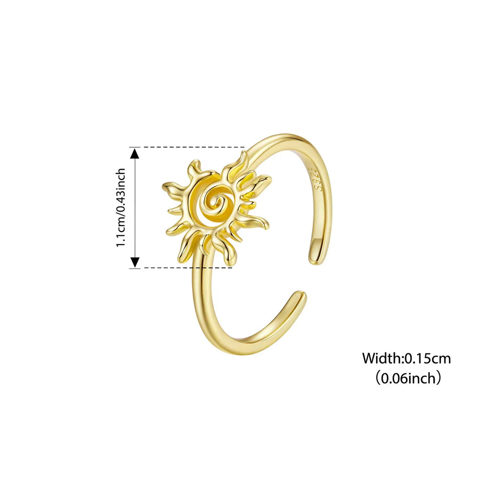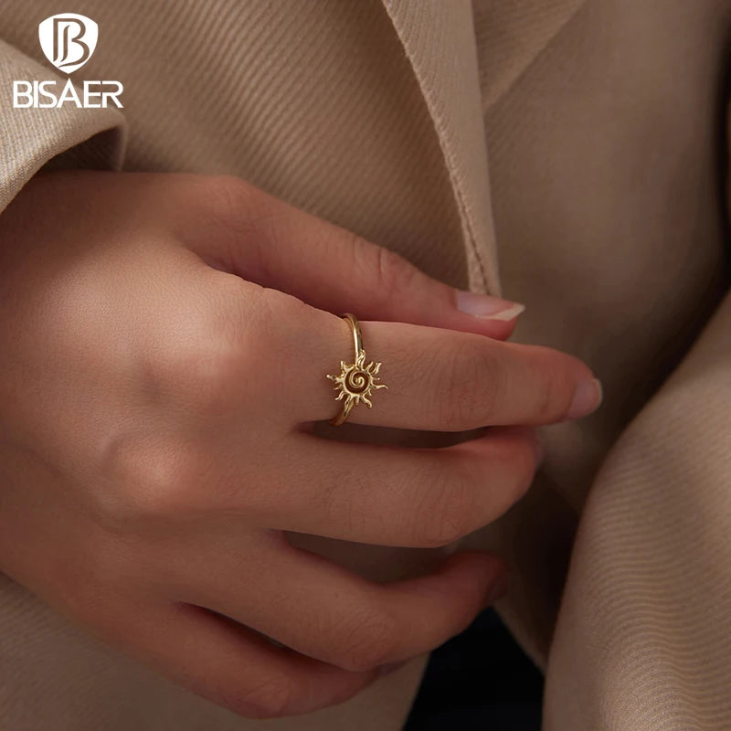 BISAER 925 Sterling Silver Sun Open Ring Stackable Eternity Band Plated Gold for Women Party Fine Jewelry EFR709-E