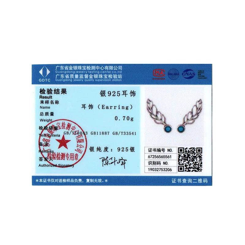 BISAER 925 Sterling Silver Turquoise Feather Stud Earrings Vintage Feathers Stud Ear for Women & Girls Party Fine Jewelry Gift
