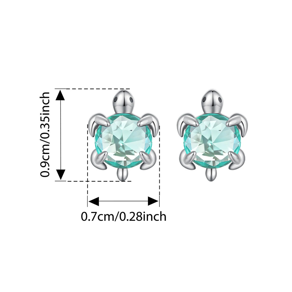 BISAER 925 Sterling Silver Turtle Stud Earrings Green Glass Stud Ear for Women & Girls Party Fine Jewelry Holiday Gift ECE1879