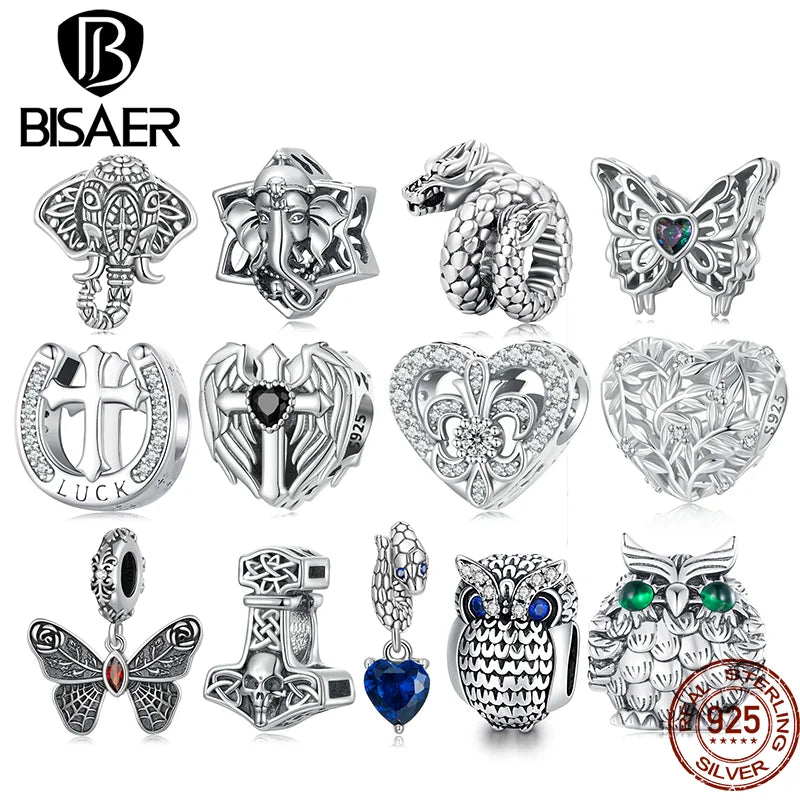 BISAER 925 Sterling Silver Vintage Elephant God Dragon Charm Perle Pendentif Croix Fit Femmes DIY Bracelet & Collier Fine Jewelry