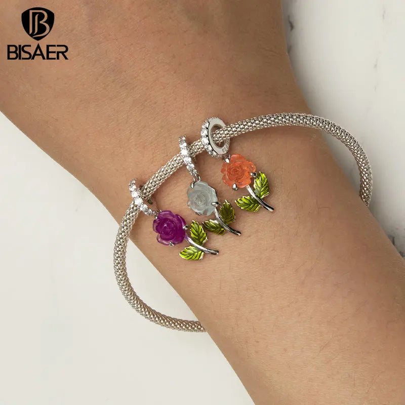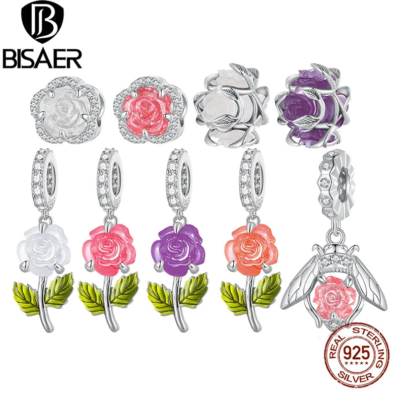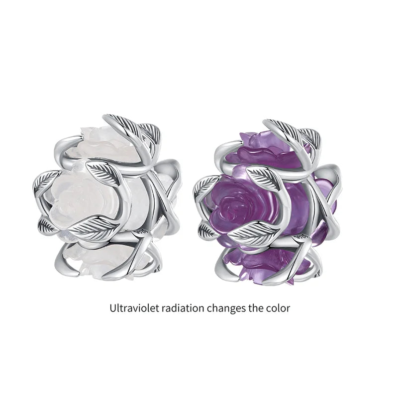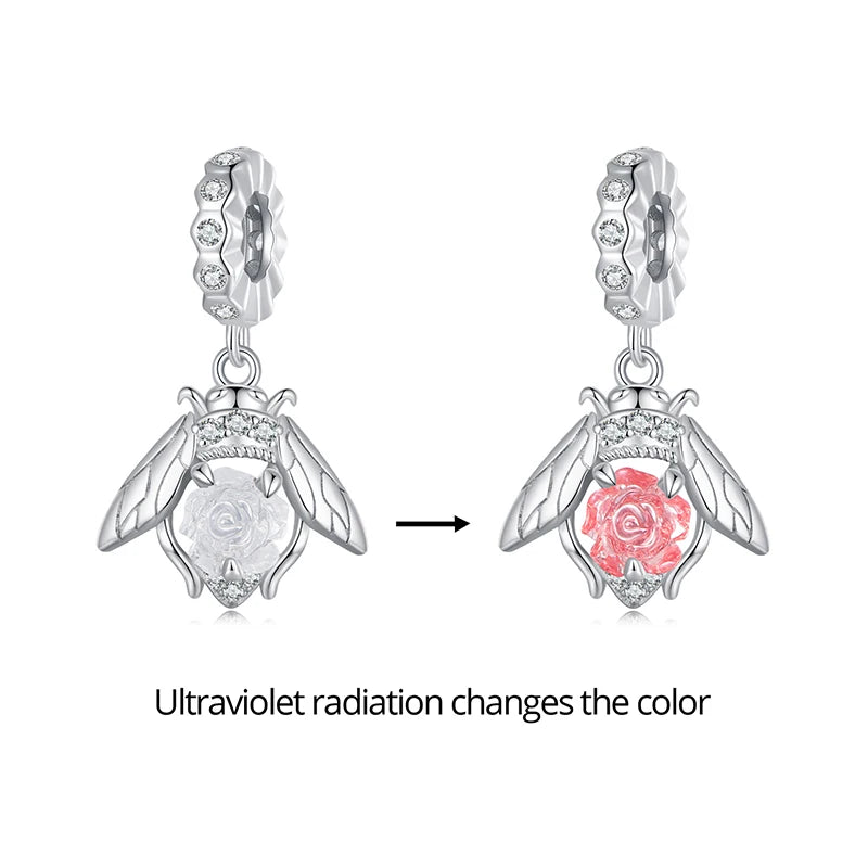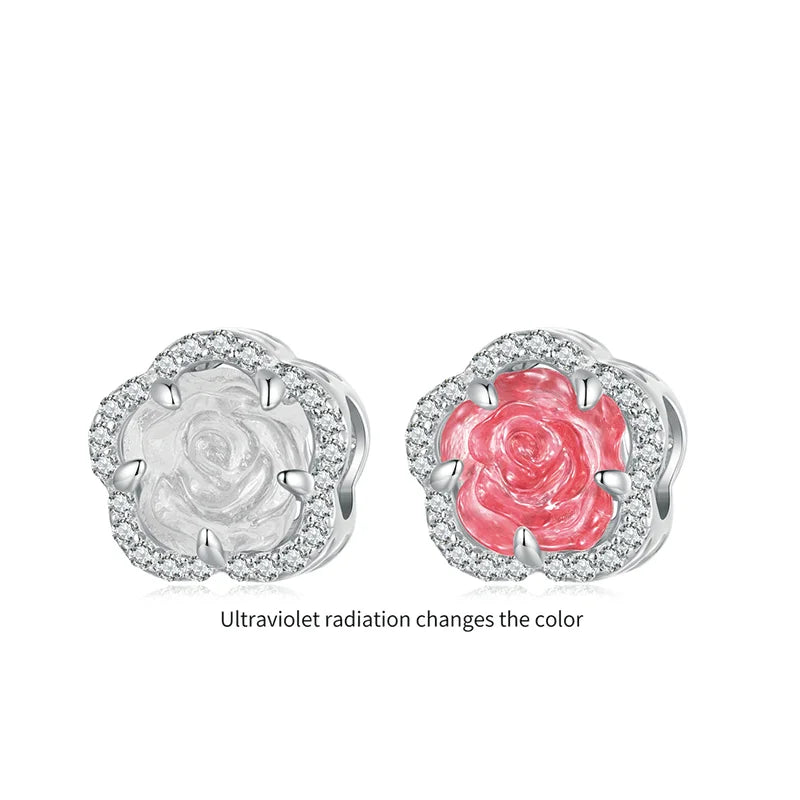 BISAER Pendentif en forme de rose blanche en argent sterling 925 avec changement de rayonnement ultraviolet, 4 couleurs, pour bracelet à faire soi-même, bijoux pour femmes