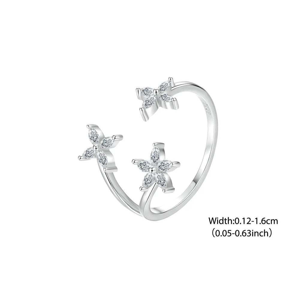 BISAER 925 Sterling SilverAutumn Leaves Open Ring Sparkling Leaf Zircon Band Plated White Gold for Women Party Fine Jewelry Gift