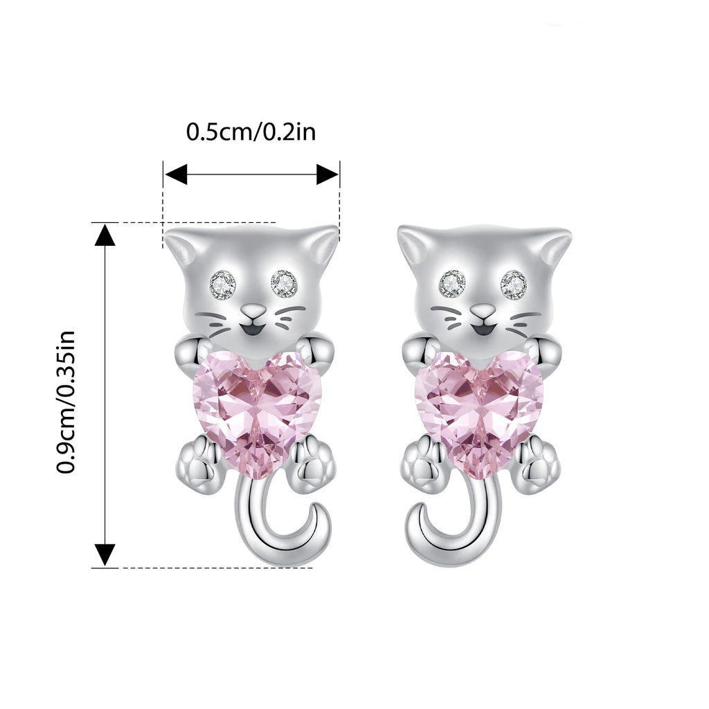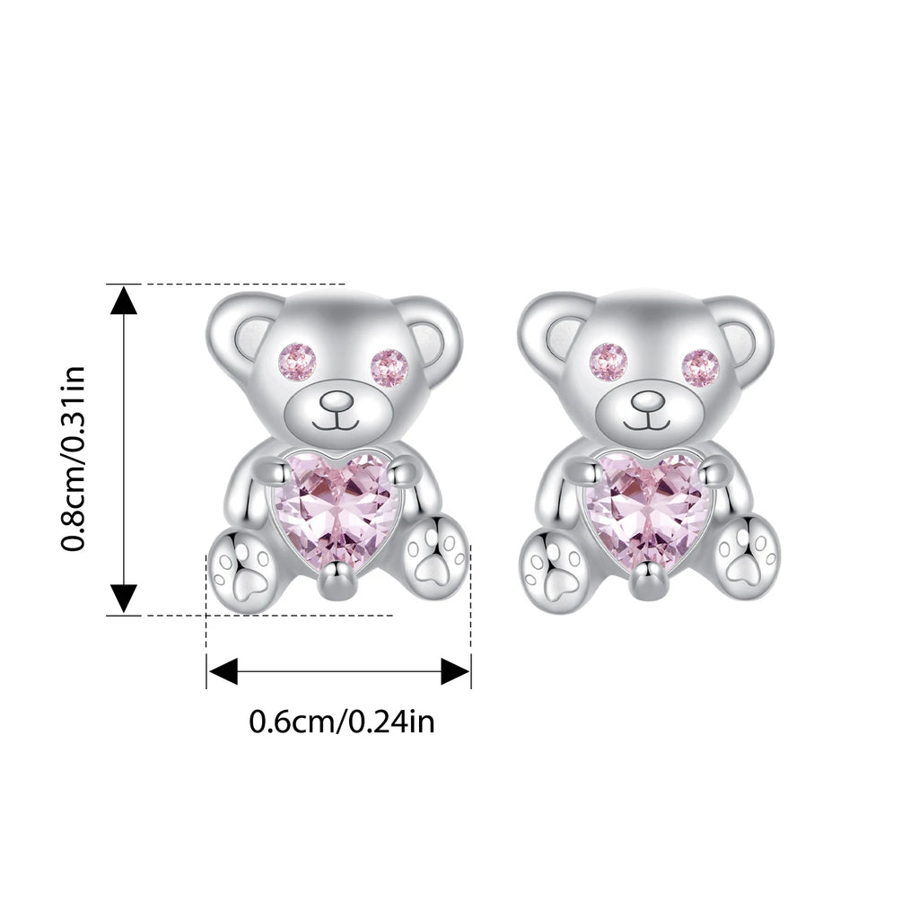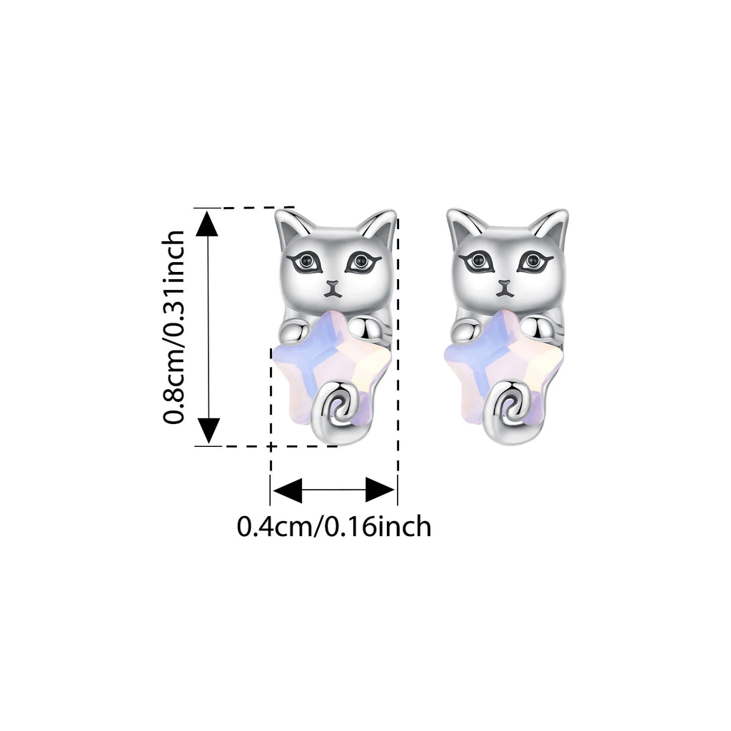 BISAER Real 925 Sterling Silver Mini Kitty Stud Earrings Fox Koala Panda Bear Animals Stud Ear For Girls Party Fine Jewelry Gift