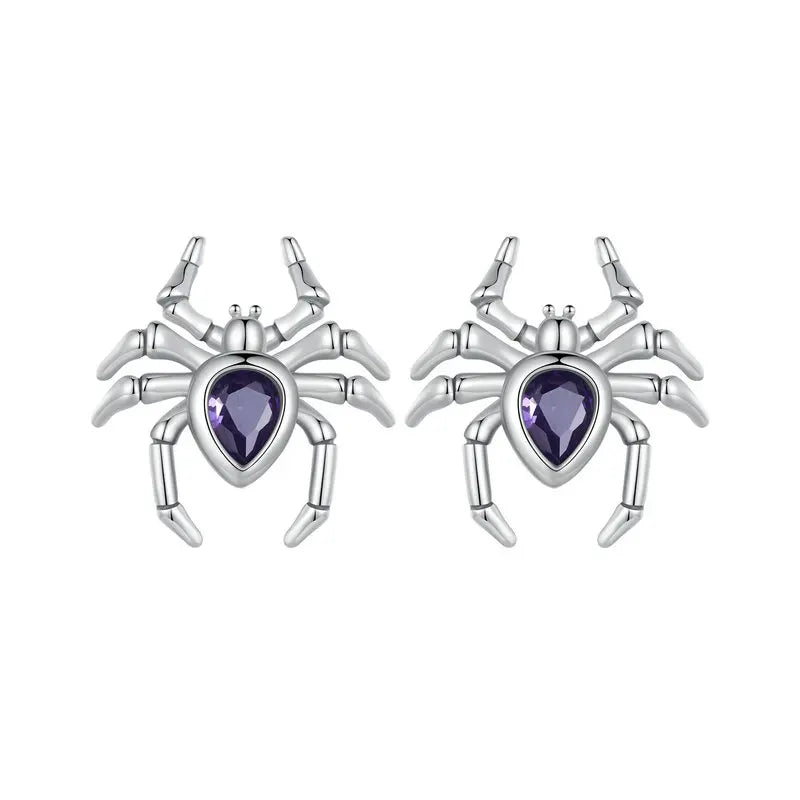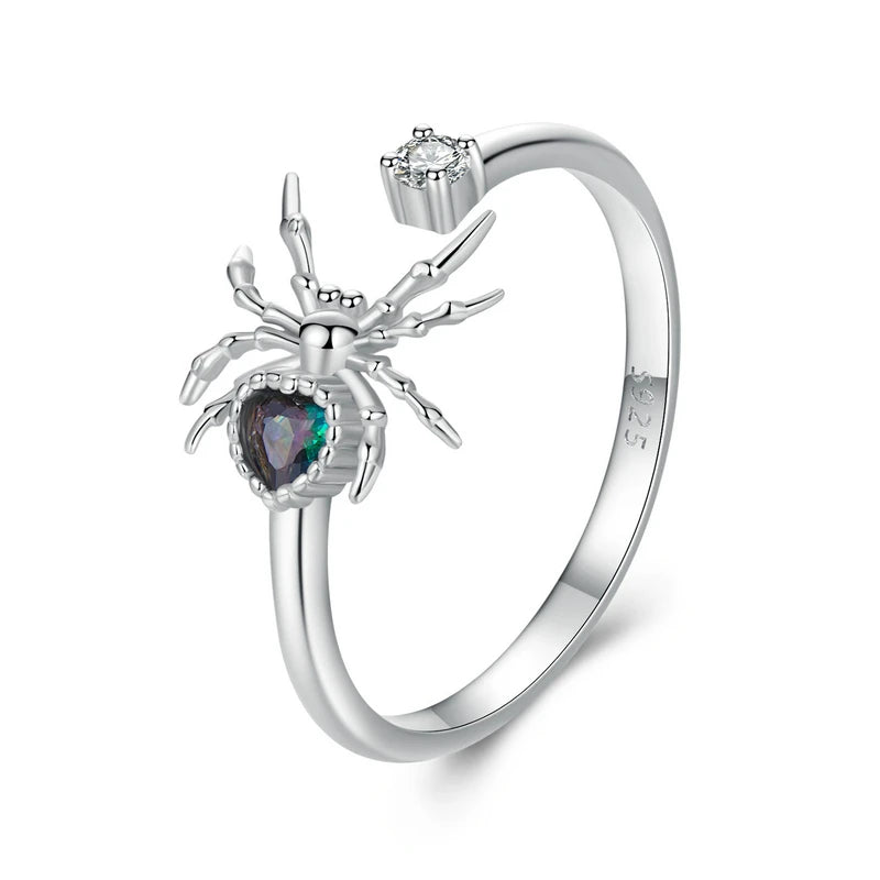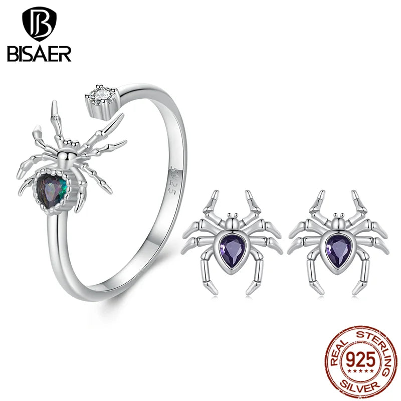 BISAER Véritable 925 Sterling Silver Spider Open Ring E-Boucles d'oreilles Ensembles de bijoux pour animaux pour femmes Fête Halloween Cadeau Bijoux fins