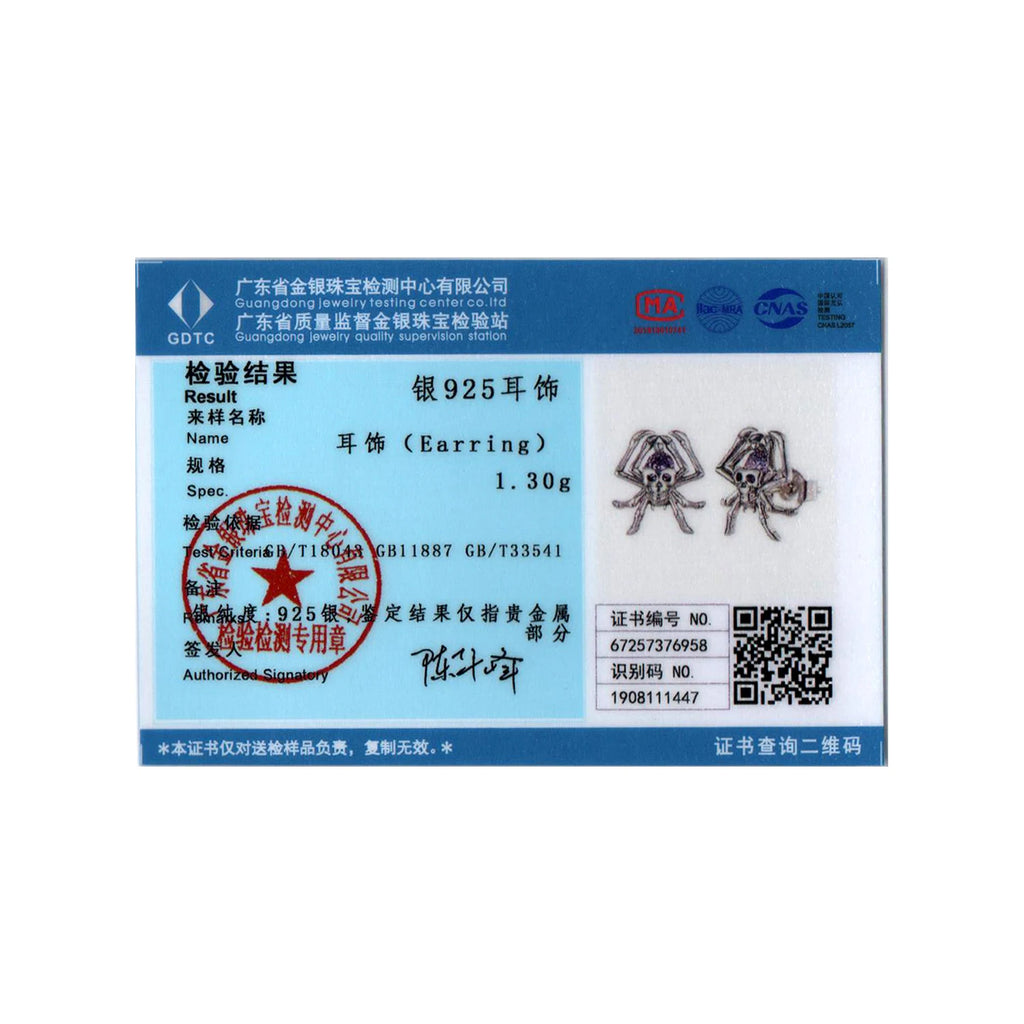 BISAER Skull Spider Stud Earrings 925 Sterling Silver Retro Spider Hypoallergenic Stud Ear for Women Fine Jewelry Halloween Gift