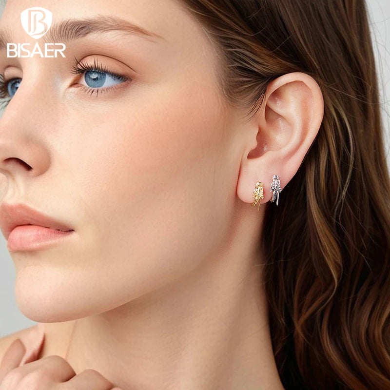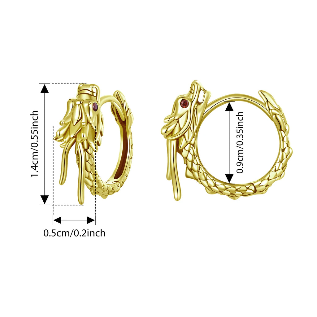 BISAER Solid 925 Sterling Silver Dragon Ear Buckles Vintage Lucky Animal Earrings Plated Gold for Women Men Fine Jewelry Gift