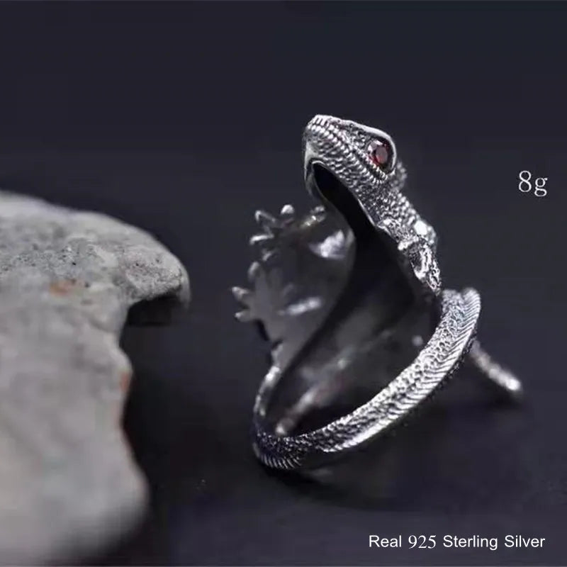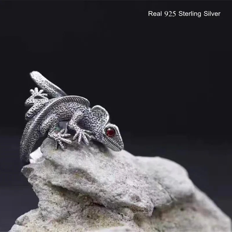 Bague ouverte en argent sterling 925 avec motif animal et lézard pour homme et femme, bijou tendance punk, avec boîte