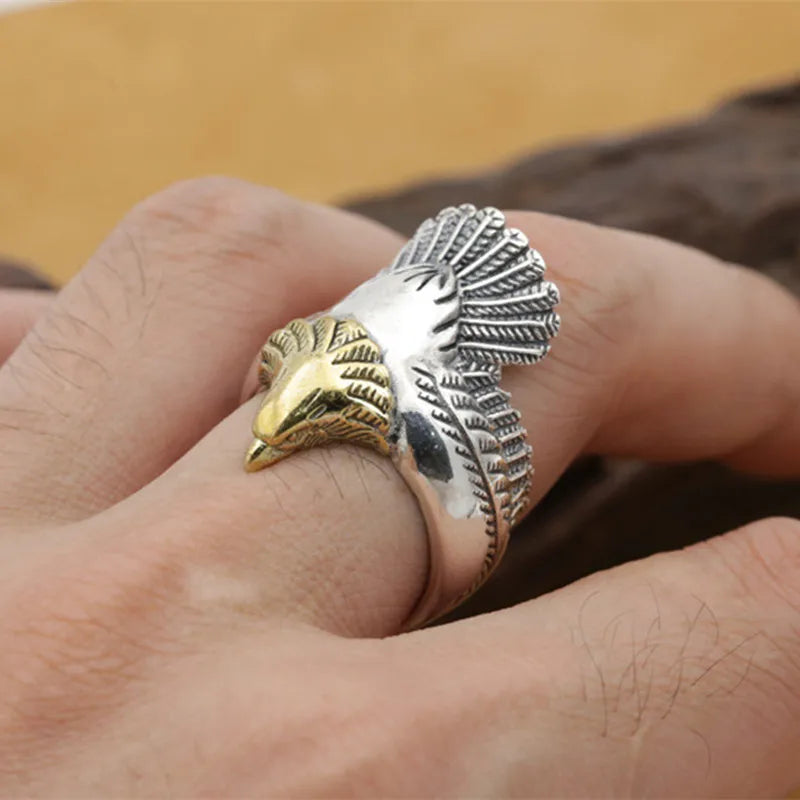 Bague ouverte en argent sterling 925 avec tête d'aigle doré pour homme et femme, bijou unique et punk, style animal