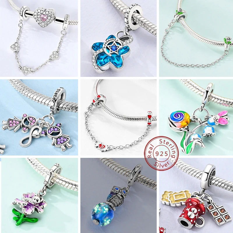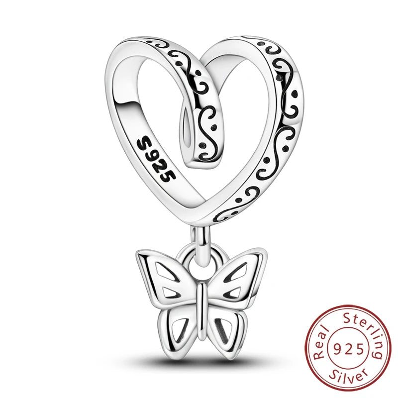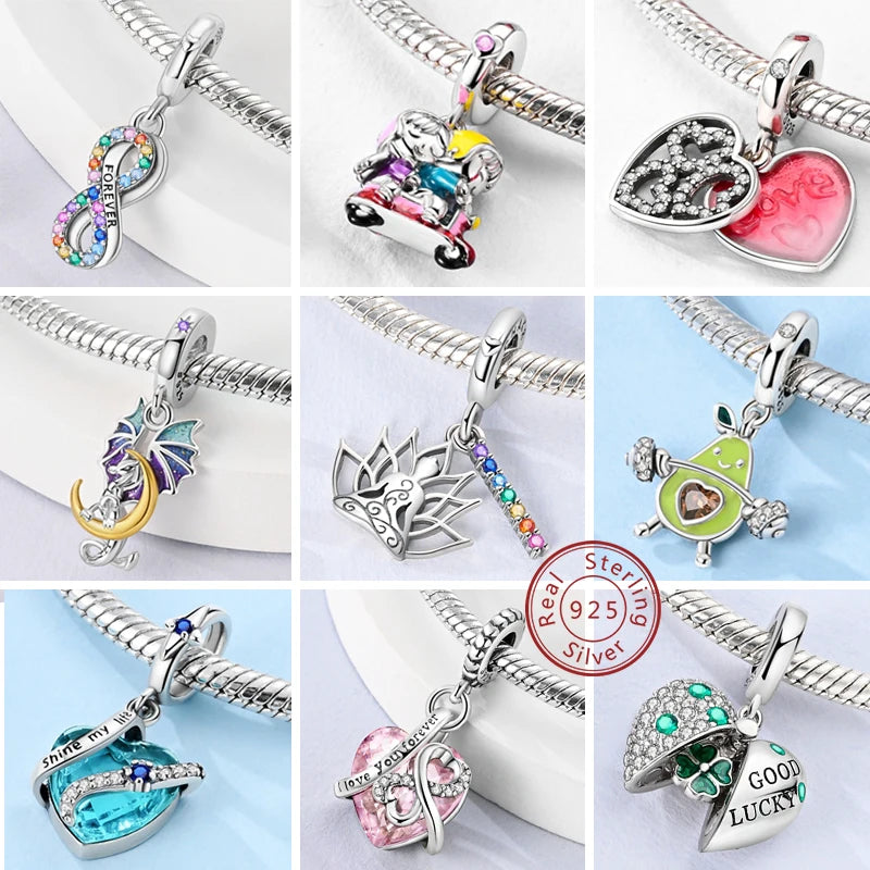 Breloque en argent sterling 925 originale avec pendentif en forme de cœur et d'amour pour bracelet, cadeau de Saint-Valentin