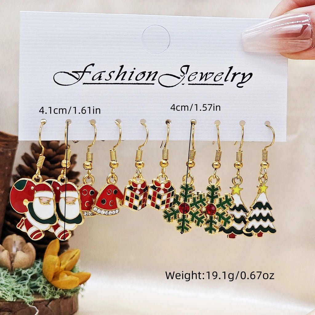 Christmas Alloy Drip Earrings Unique Reindeer Snowman Hat Snowflake Tree Women Accessories