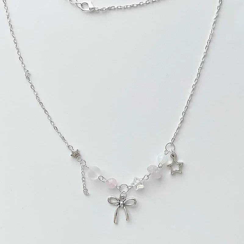 Crystal Bow Charm Necklace Handmade Coquettish Girls Necklace