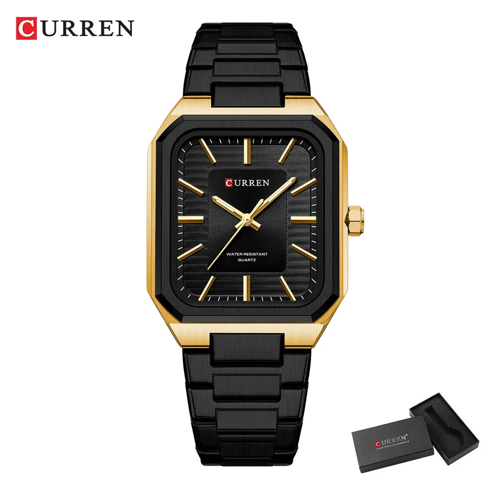 Montre à quartz CURREN NEW pour homme, bracelet en acier inoxydable, cadran rectangulaire vintage, aiguilles lumineuses, étanche