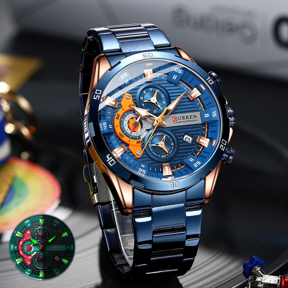 Montres CURREN en acier inoxydable pour hommes, cadran lumineux créatif et tendance avec chronographe, montres-bracelets décontractées pour hommes