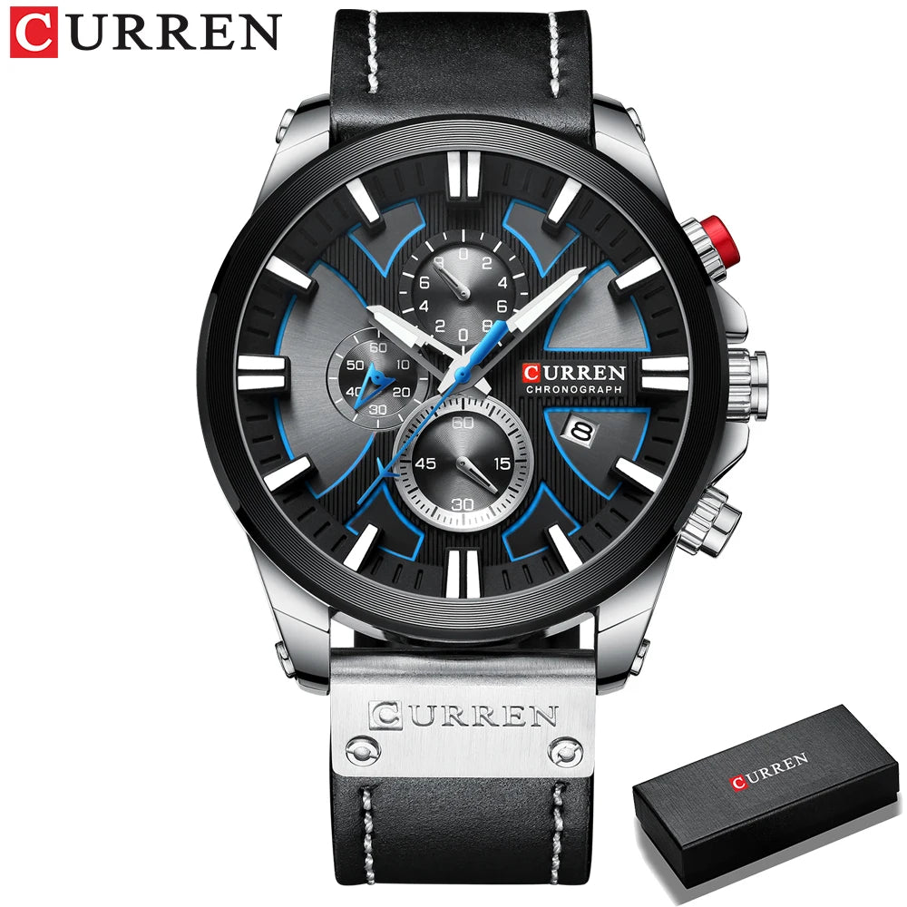 Montre CURREN Chronographe Sport Montre à Quartz Montre-bracelet en cuir pour homme Relogio Masculino Cadeau Mode pour Homme