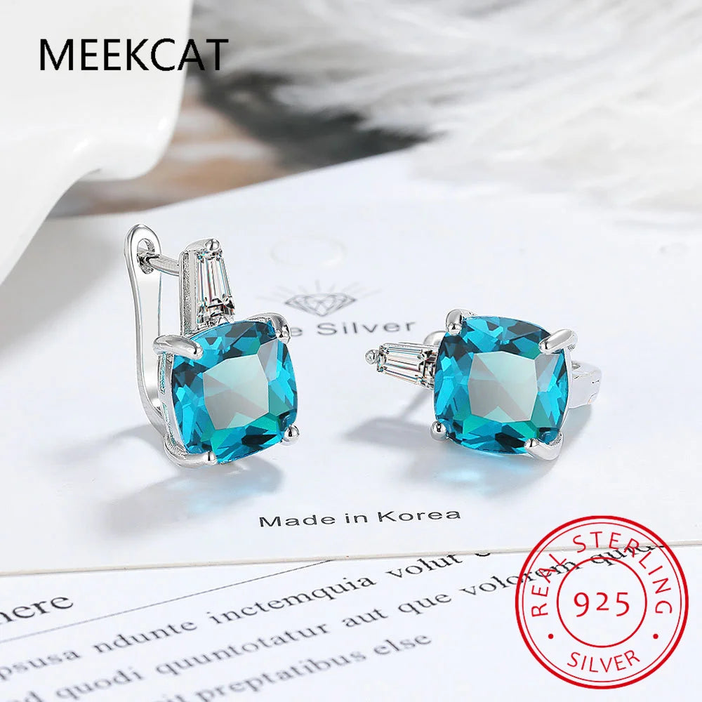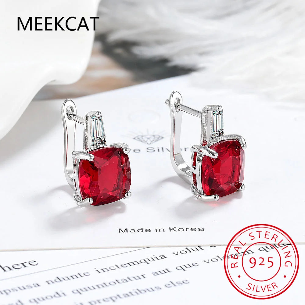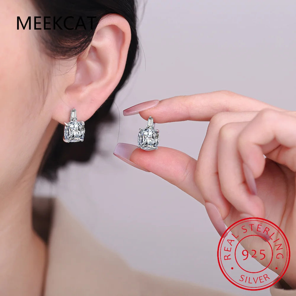 Boucles d'oreilles créoles en argent sterling 925 et améthyste véritable taille coussin, pour femme. Bijou carré tendance en pierre précieuse, cadeau d'anniversaire.