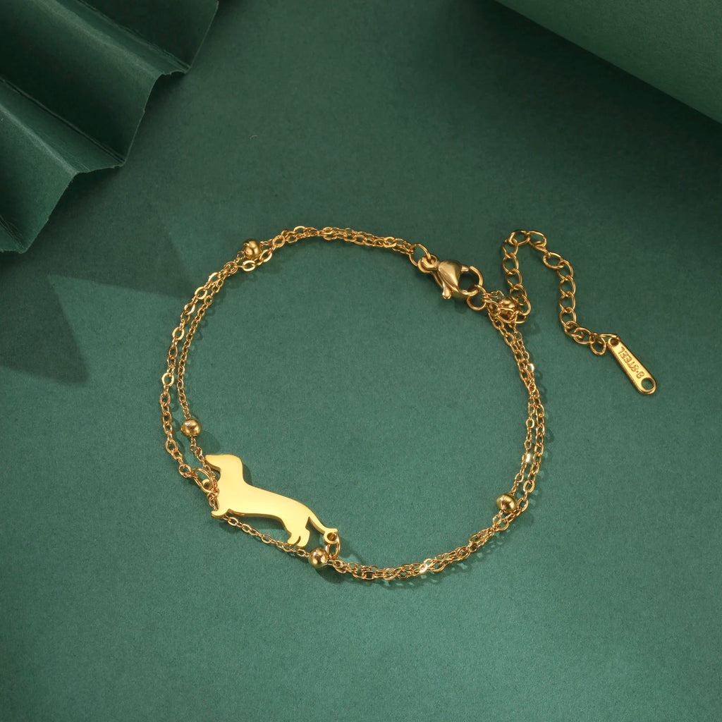 Bracelet à breloques teckel pour femme, en acier inoxydable, double chaîne de perles, adorable bracelet à motif chiot et animal de compagnie, bijou cadeau