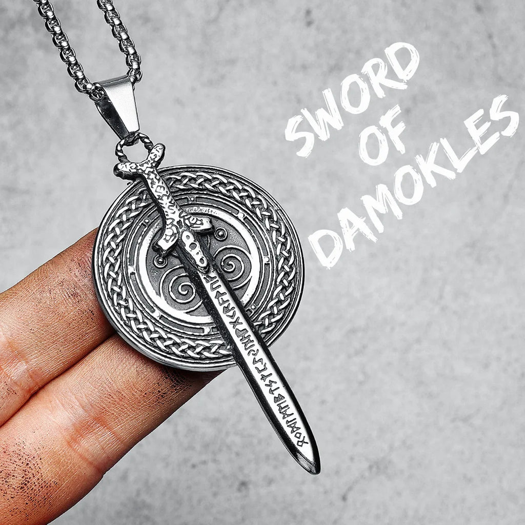 Collier pour homme avec épée de Damokles en acier inoxydable, pendentif de la Grèce antique, chaîne rock punk rap pour ami, bijoux masculins, cadeau, livraison directe