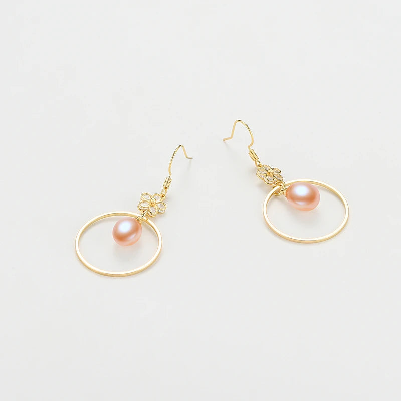 Boucles d'oreilles pendantes en perles d'eau douce véritables, motif fleurs, pour femme. Bijou fantaisie, accessoire raffiné pour une fête d'anniversaire.