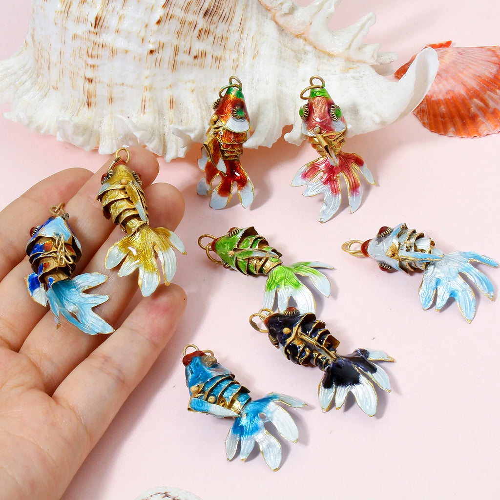 DoreenBeads, 1 pièce, pendentif en laiton 3D en forme de poisson, animal mobile, océan, couleur or, pour collier, fabrication de bijoux DIY, 4,8 cm x 2,4 cm