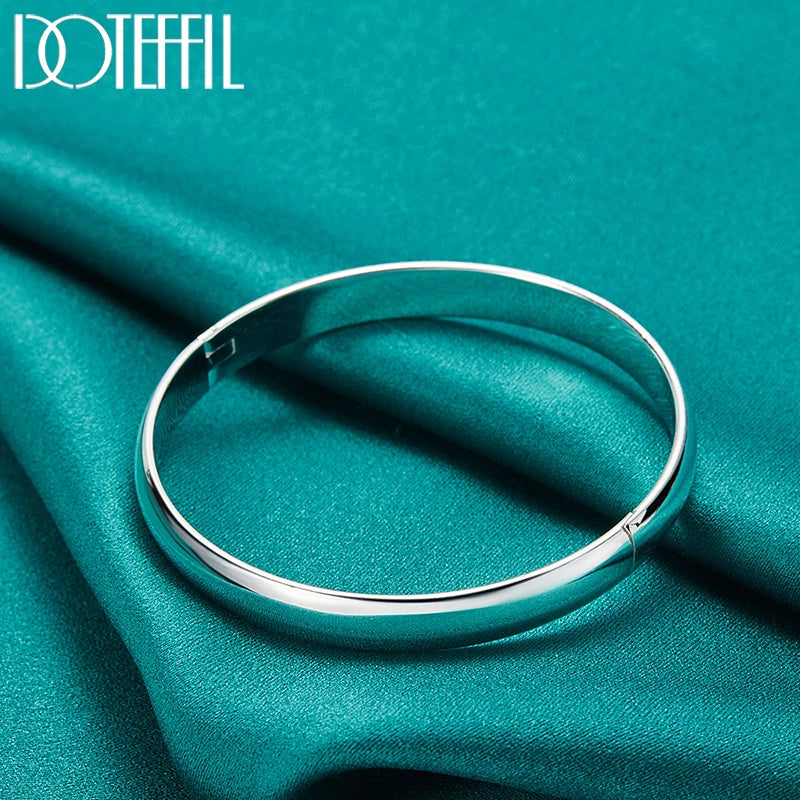 DOTEFFIL 925 Sterling Silver 8mm Smooth Bangle Bracelet For Woman Man Wedding Engagement Fashion Charm Party Jewelry