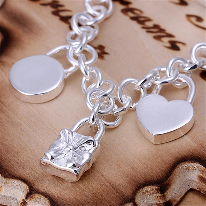 DOTEFFIL 925 Sterling Silver Bracelet Heart / Circle / Square Lock Bracelets Bangles Woman Man Fashion Charm Wedding Jewelry