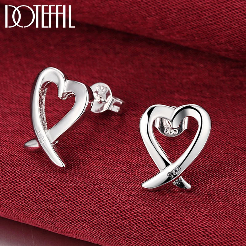 DOTEFFIL 925 Sterling Silver Hollow Heart Stud Earrings For Woman Wedding Engagement Fashion Party Charm Jewelry