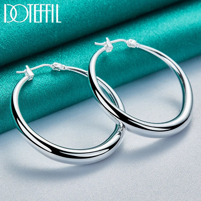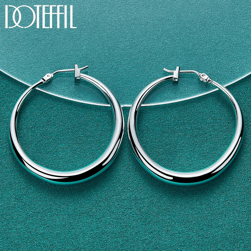 DOTEFFIL 925 Sterling Silver Smooth 36mm Big Circle Hoop Earrings For Women Wedding Engagement Party Jewelry
